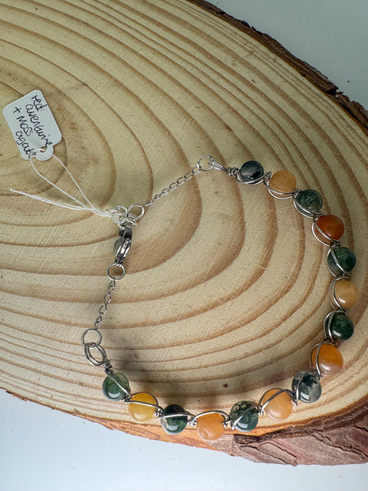 Stainless Steel Moss Agate & Red Aventurine Bracelet