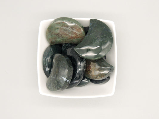 Moss Agate Moon Carvings