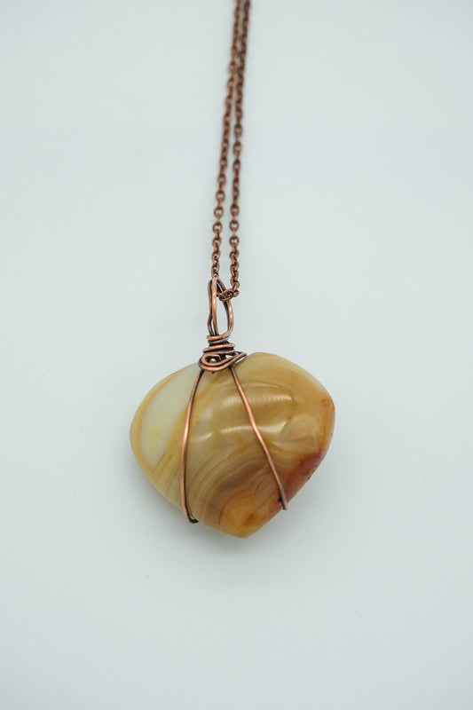 Agate Heart Copper Wire Wrapped Pendant