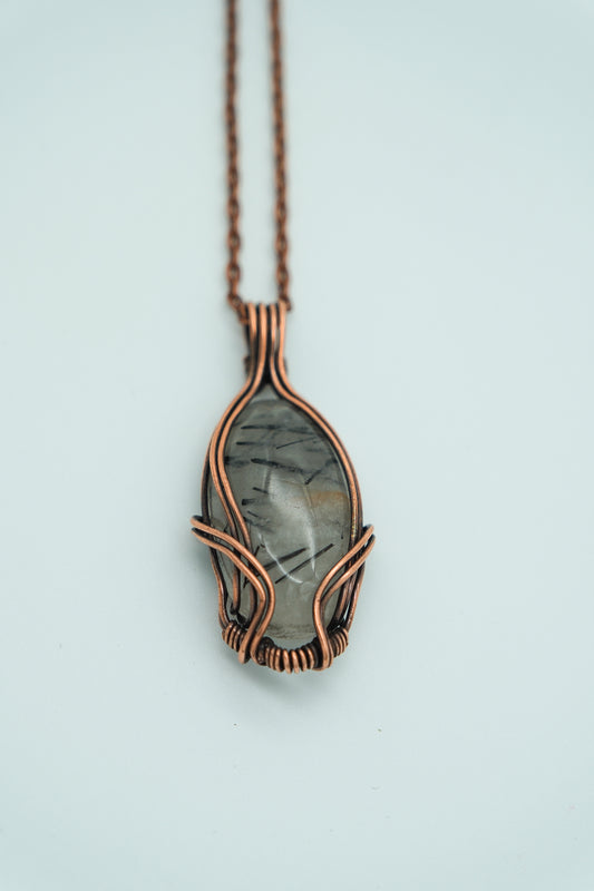 Black Rutile Quartz Copper Wire Wrapped Pendant