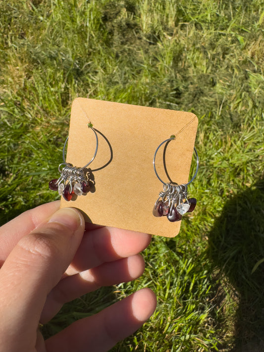 Garnet & Clear Quartz Stainless Steel Hoop Earrings
