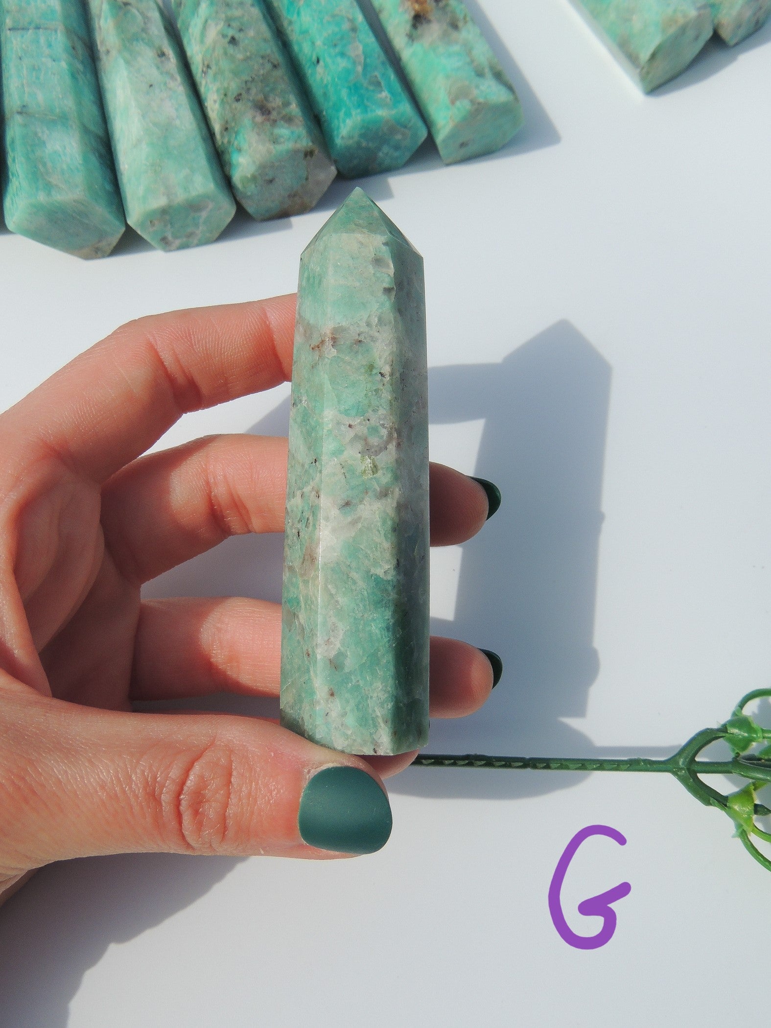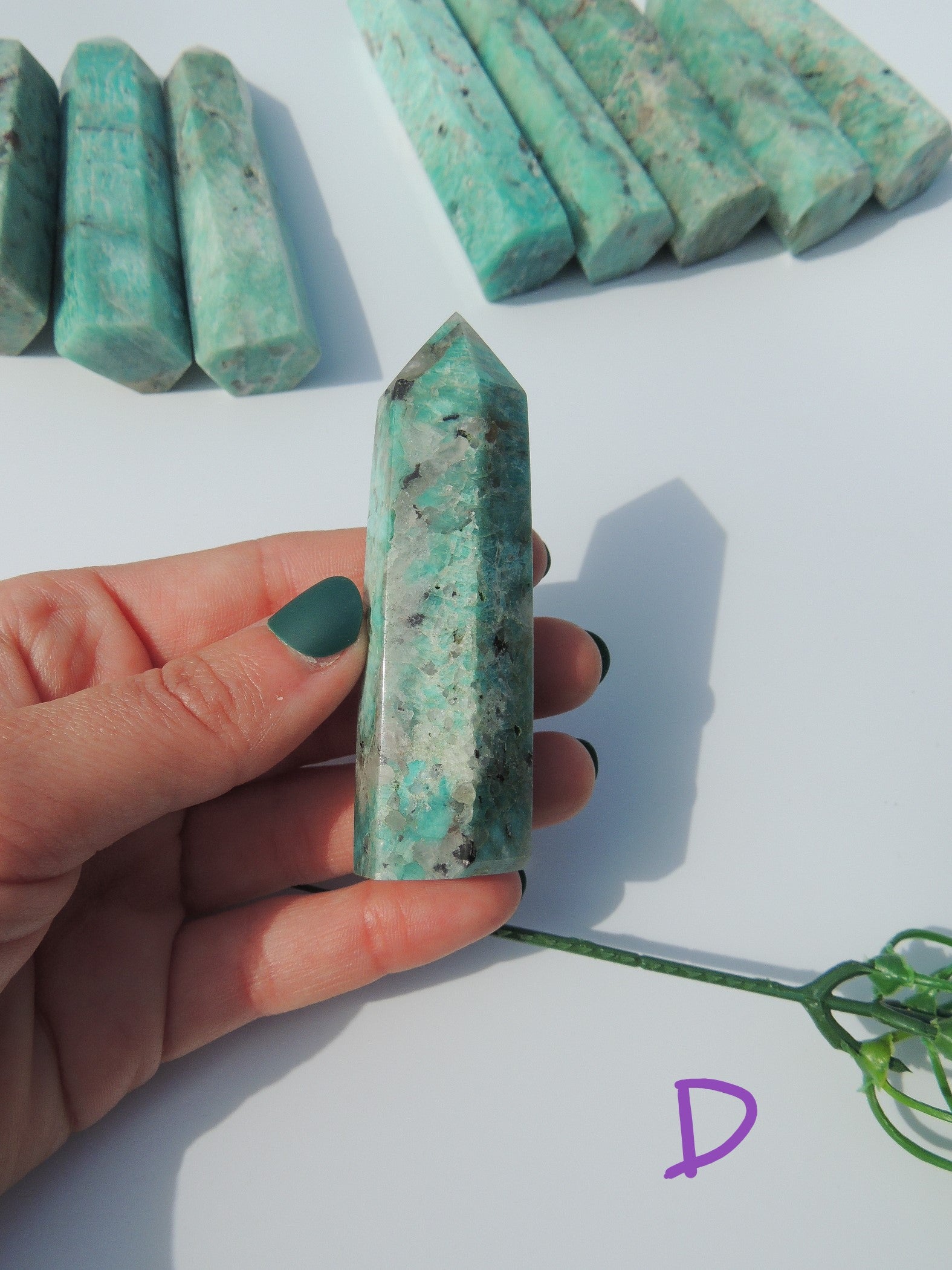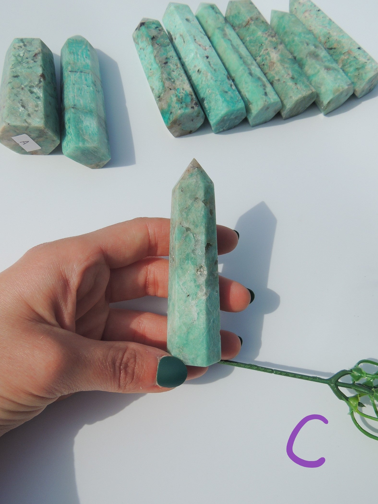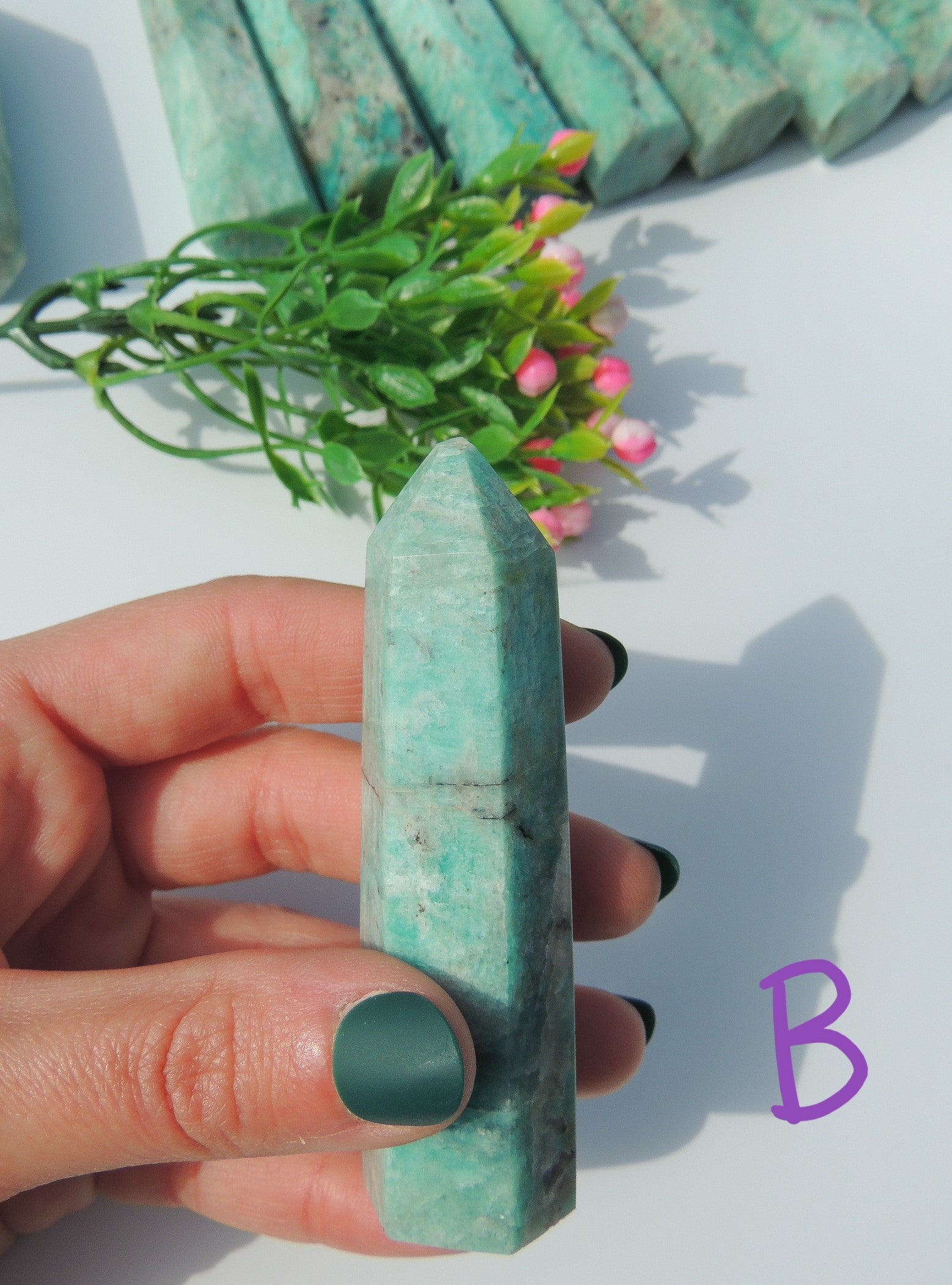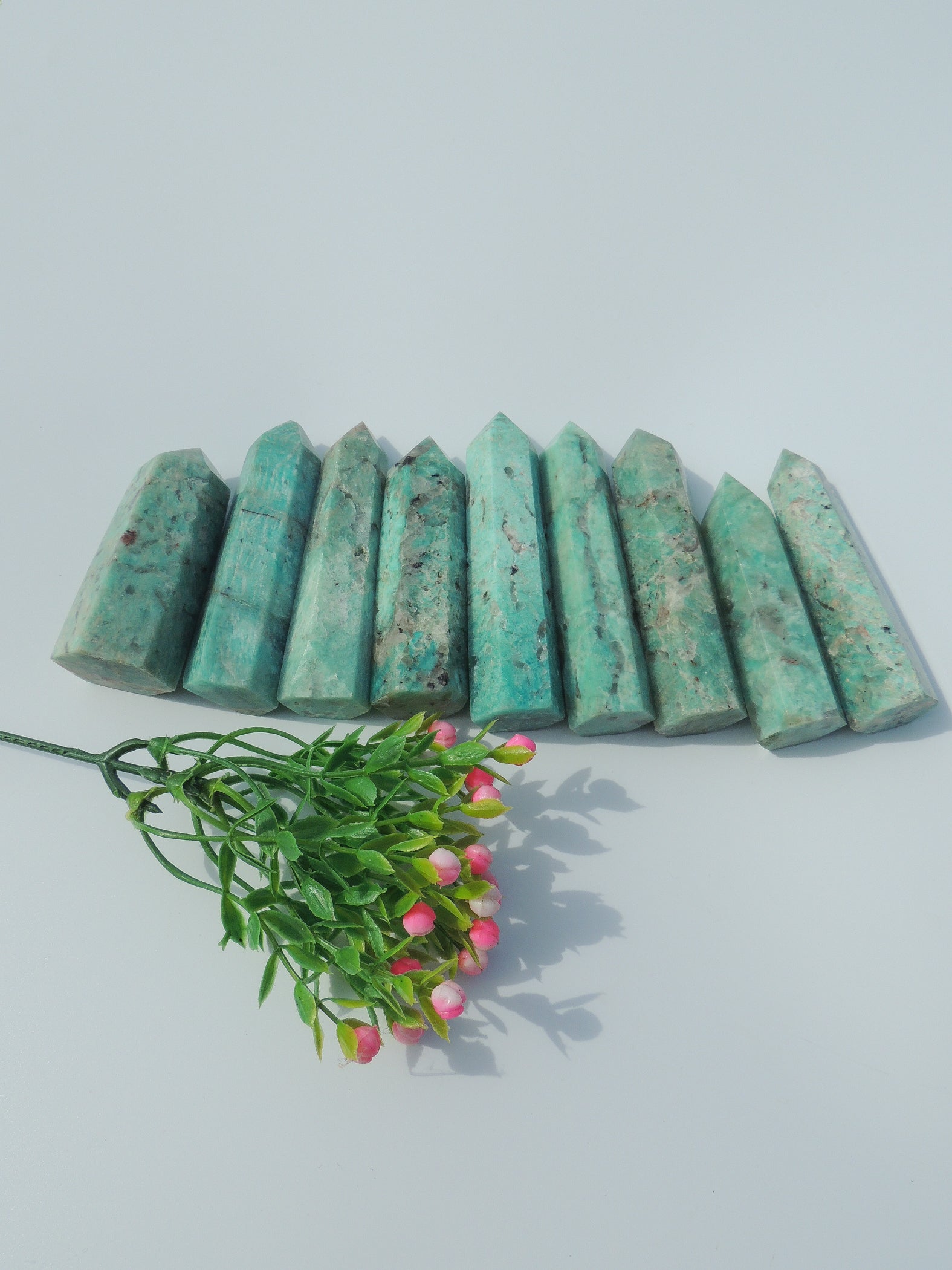 These lovely, vibrant amazonite towers radiate calm, healing energy and are perfect for promoting hope, truth, and inner balance. You will receive the exact tower you choose, ensuring a unique addition to your collection!