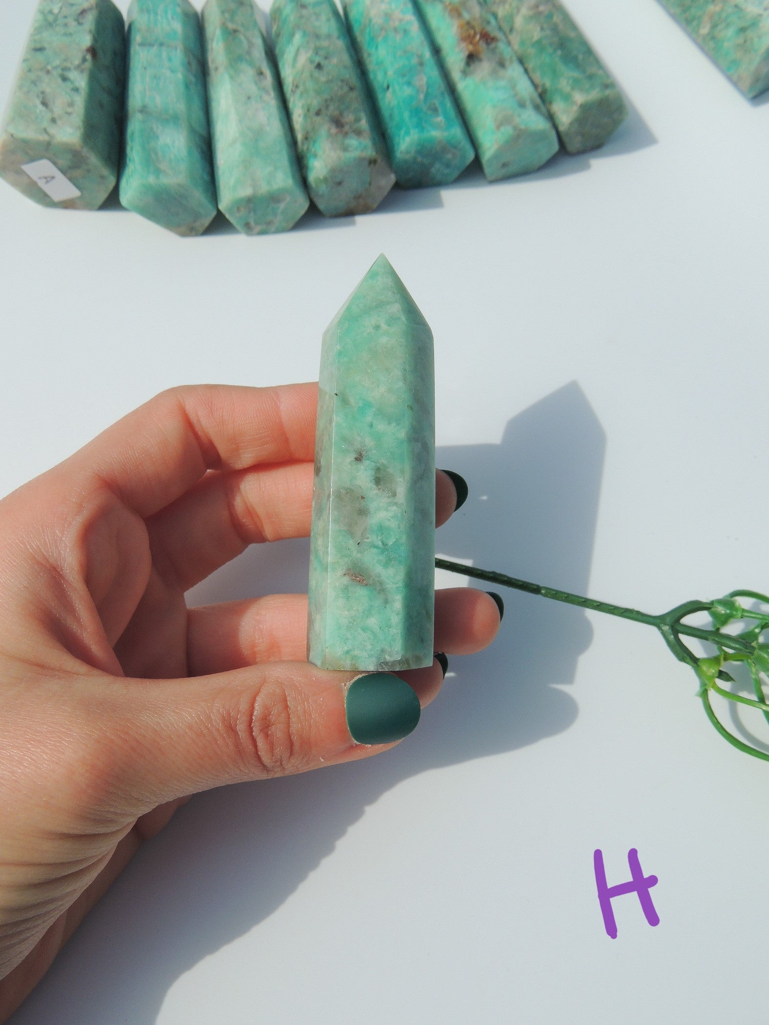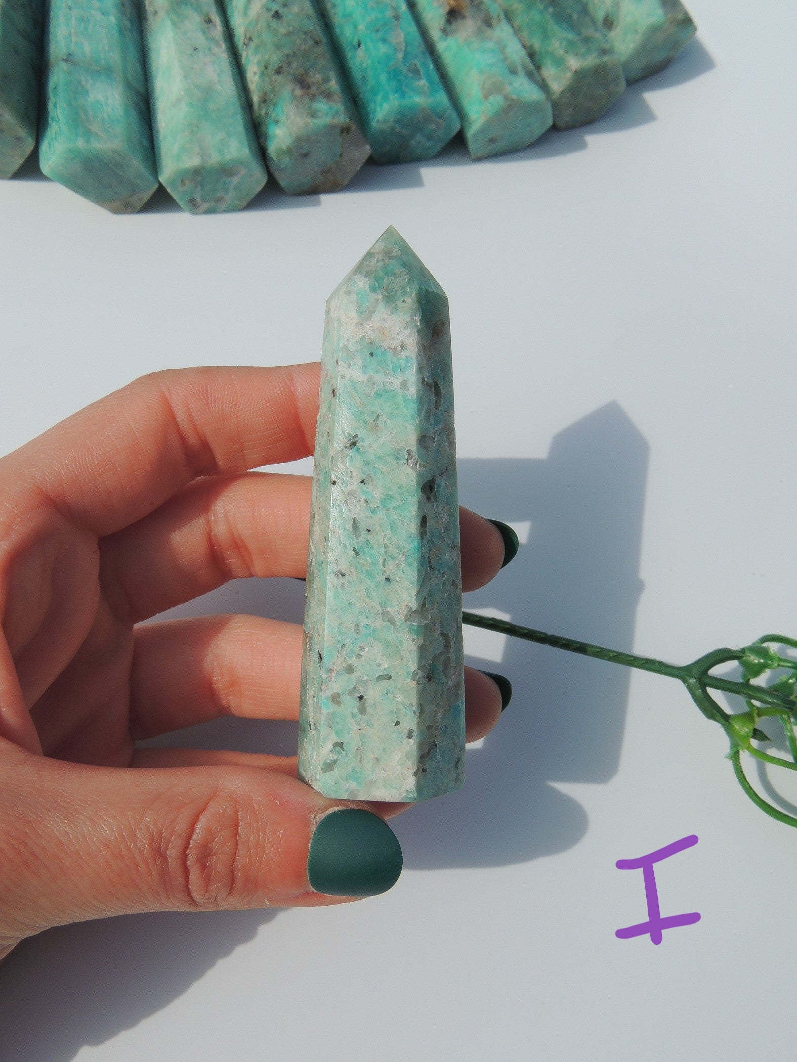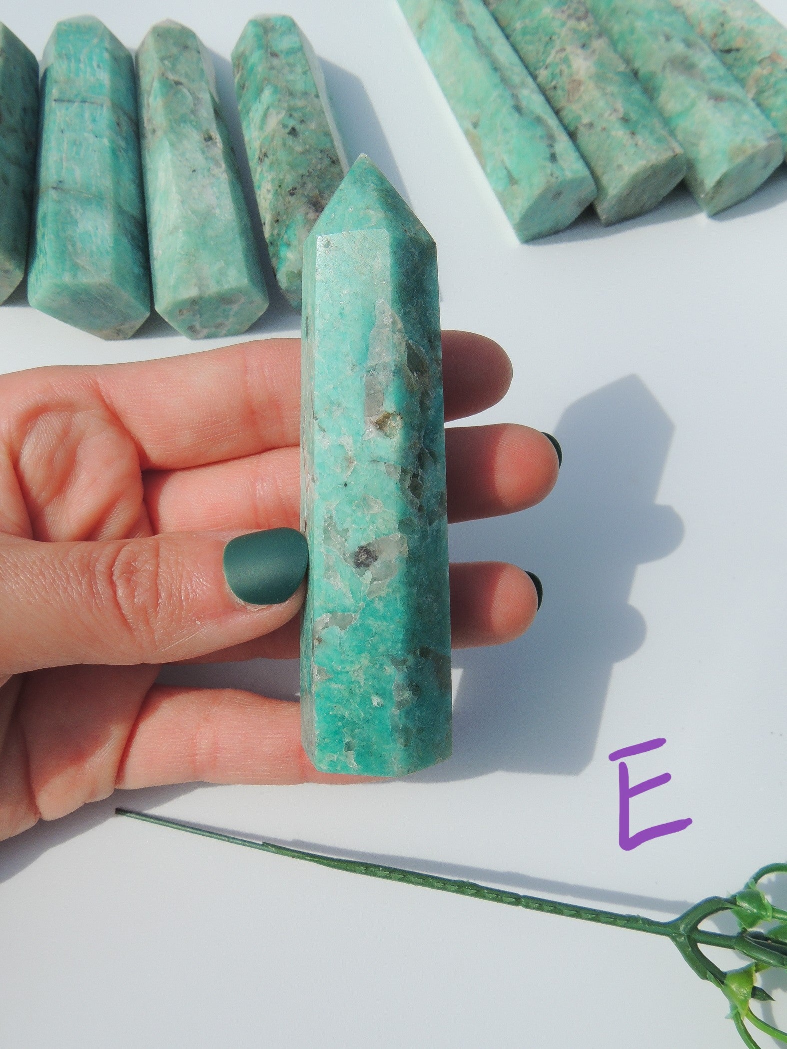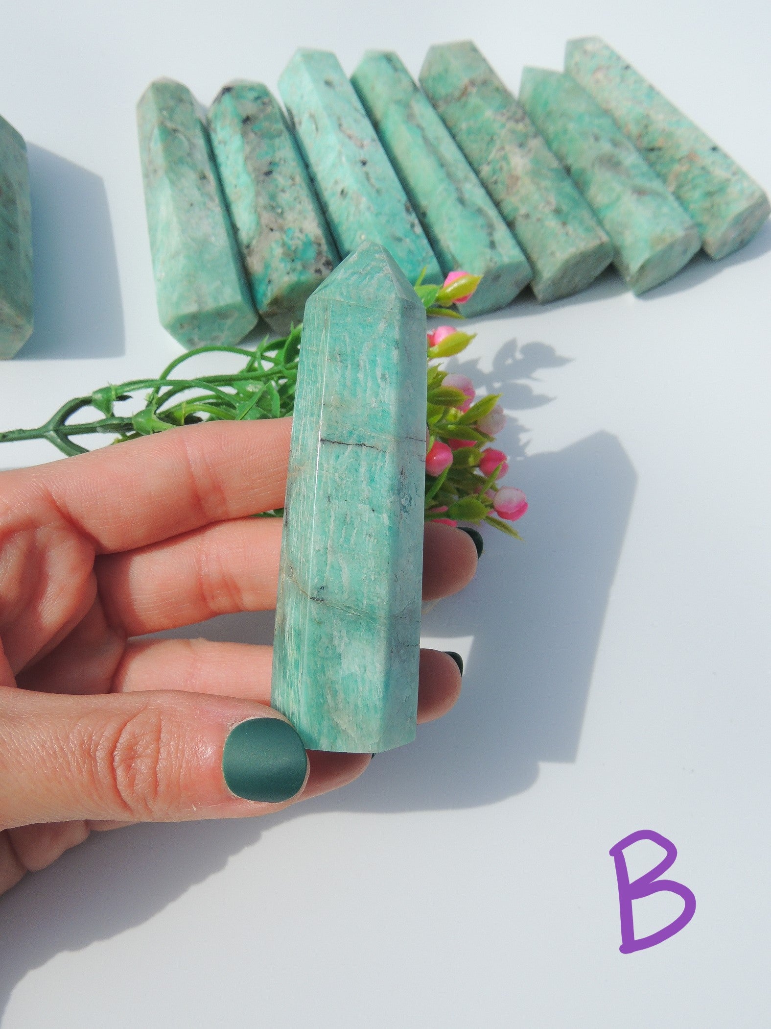 These lovely, vibrant amazonite towers radiate calm, healing energy and are perfect for promoting hope, truth, and inner balance. You will receive the exact tower you choose, ensuring a unique addition to your collection!