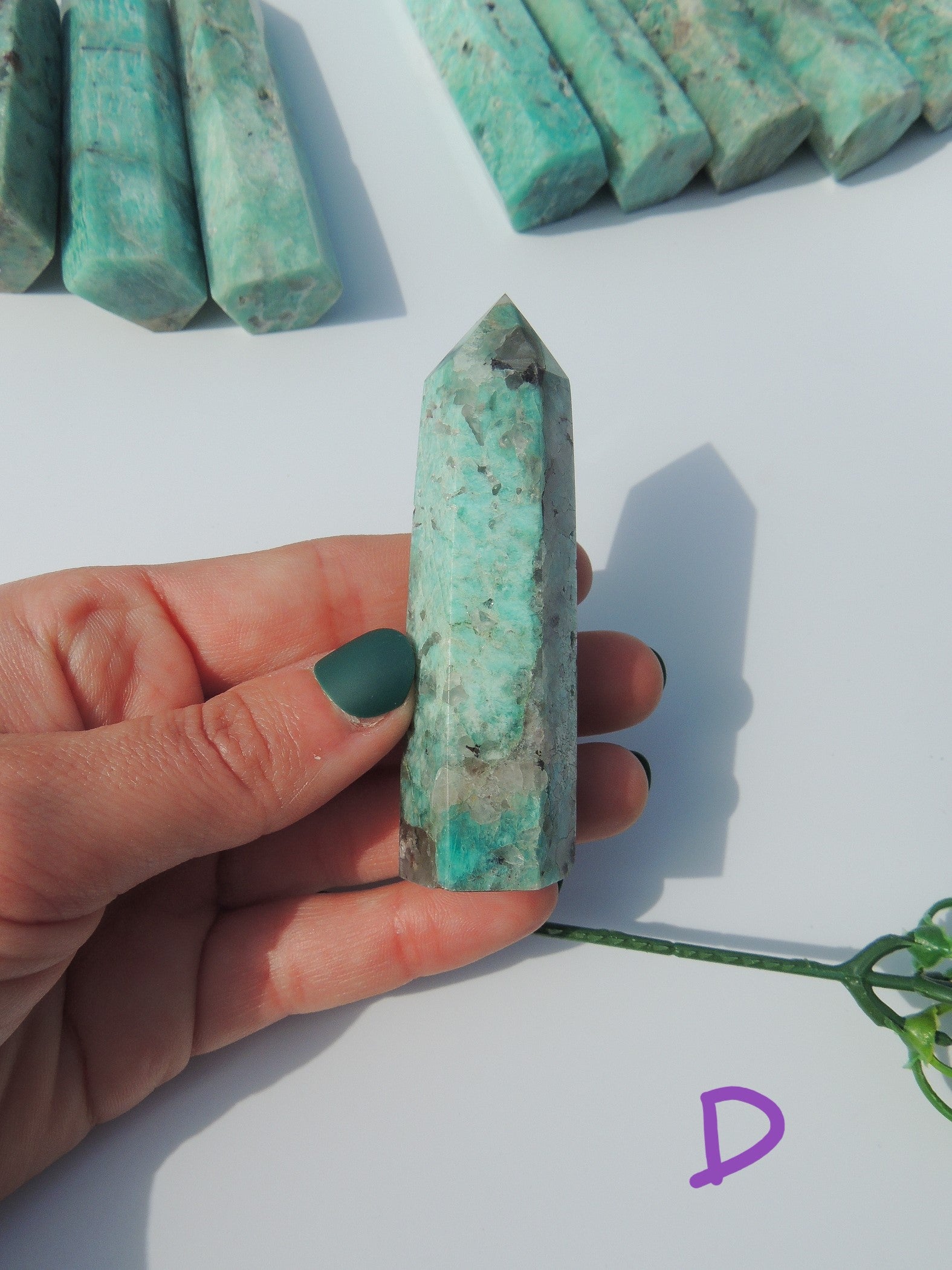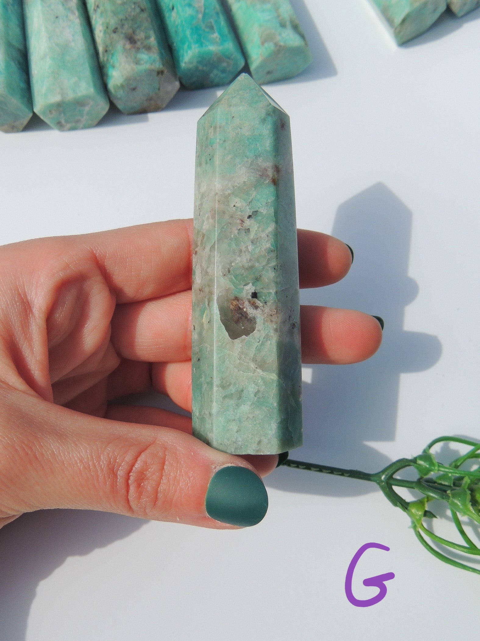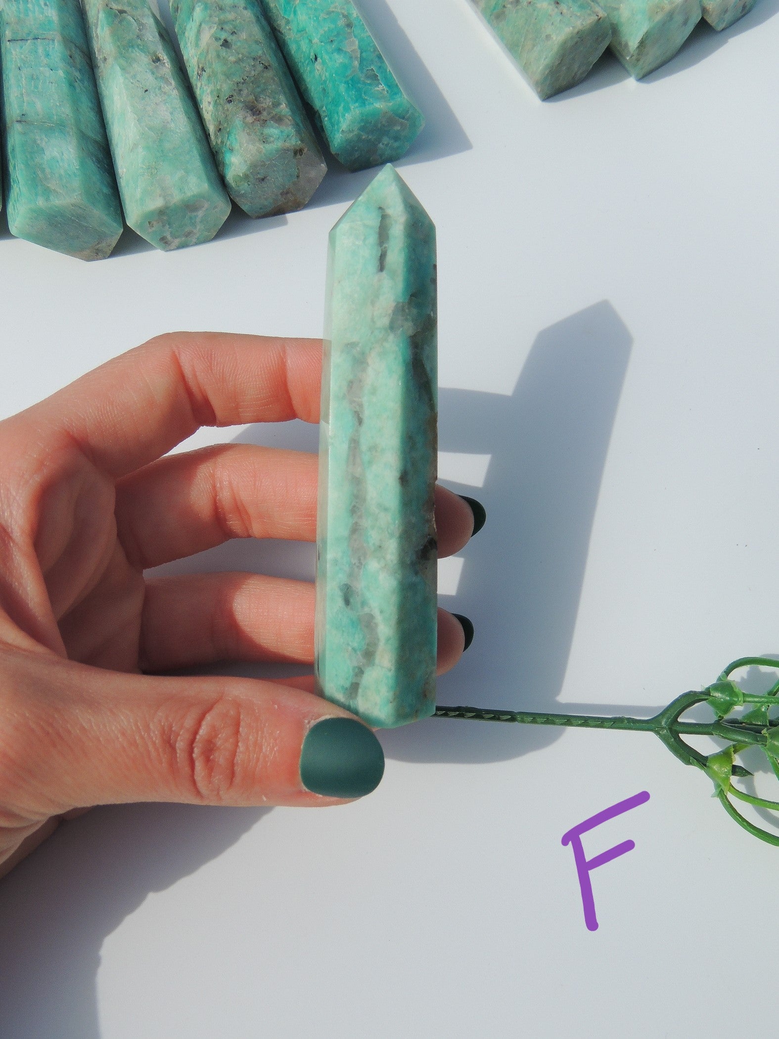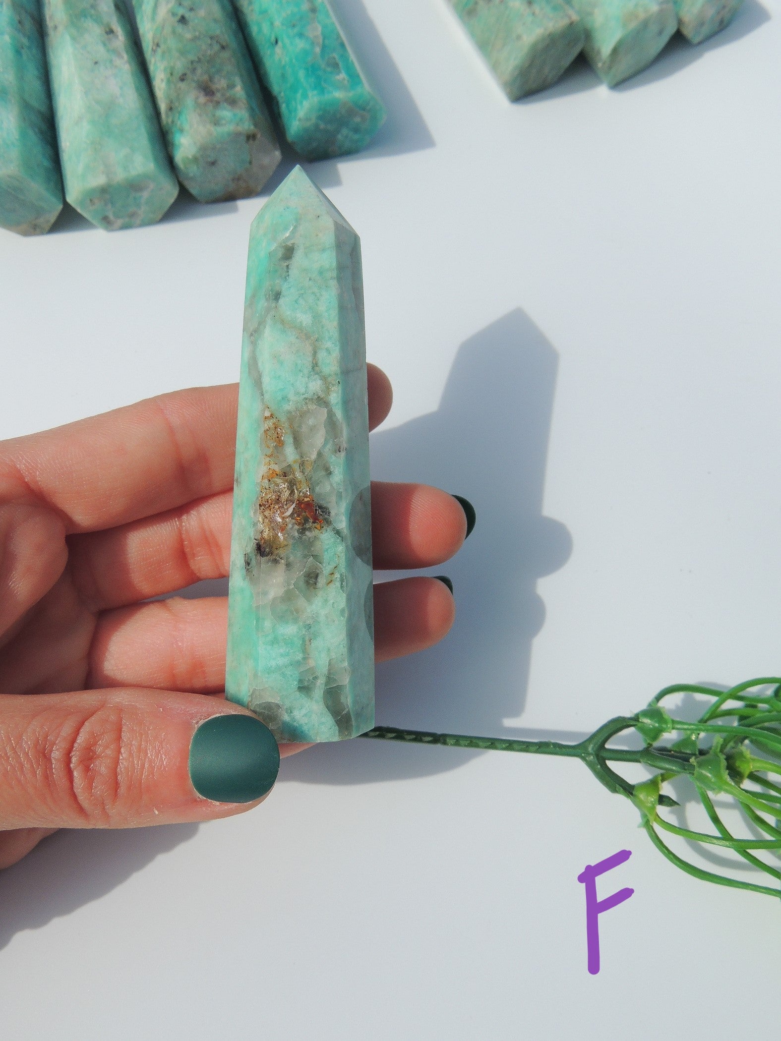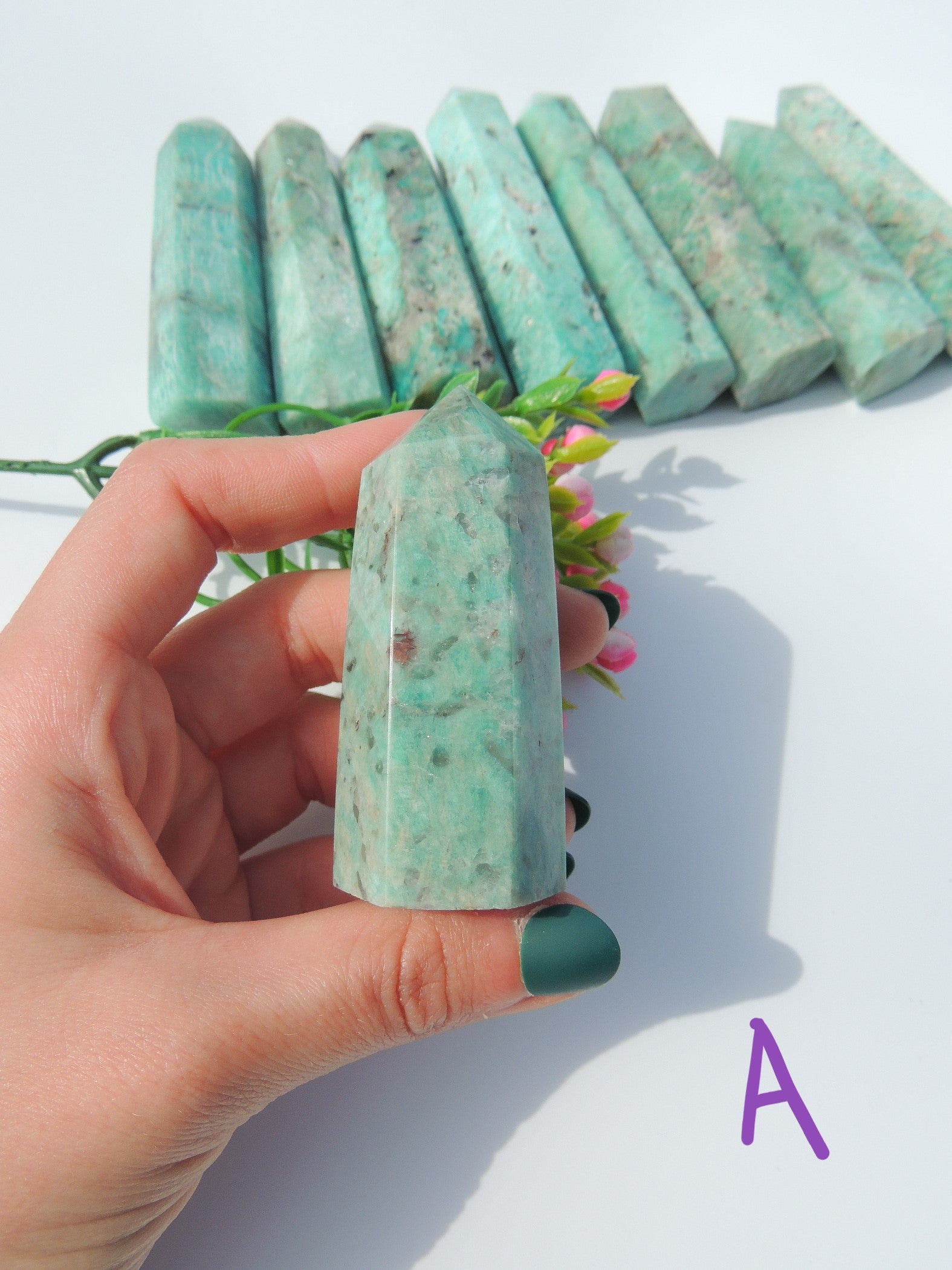 These lovely, vibrant amazonite towers radiate calm, healing energy and are perfect for promoting hope, truth, and inner balance. You will receive the exact tower you choose, ensuring a unique addition to your collection!
