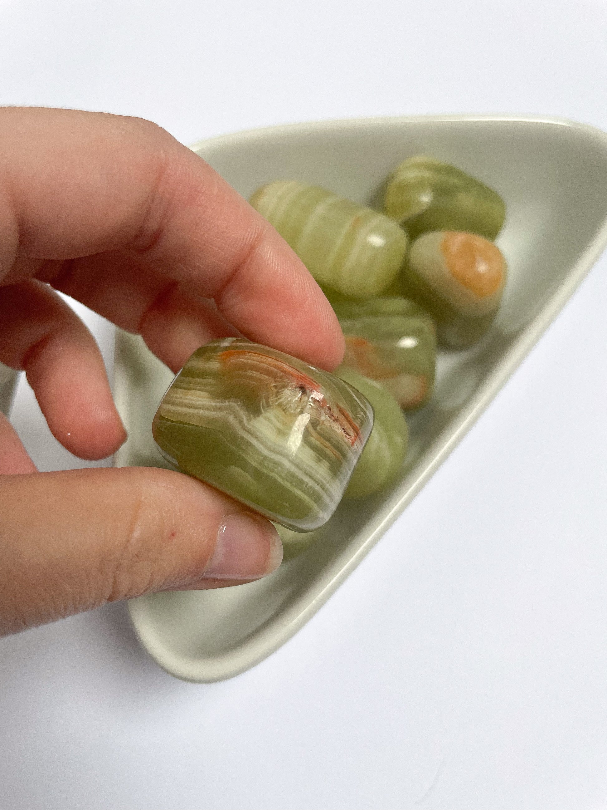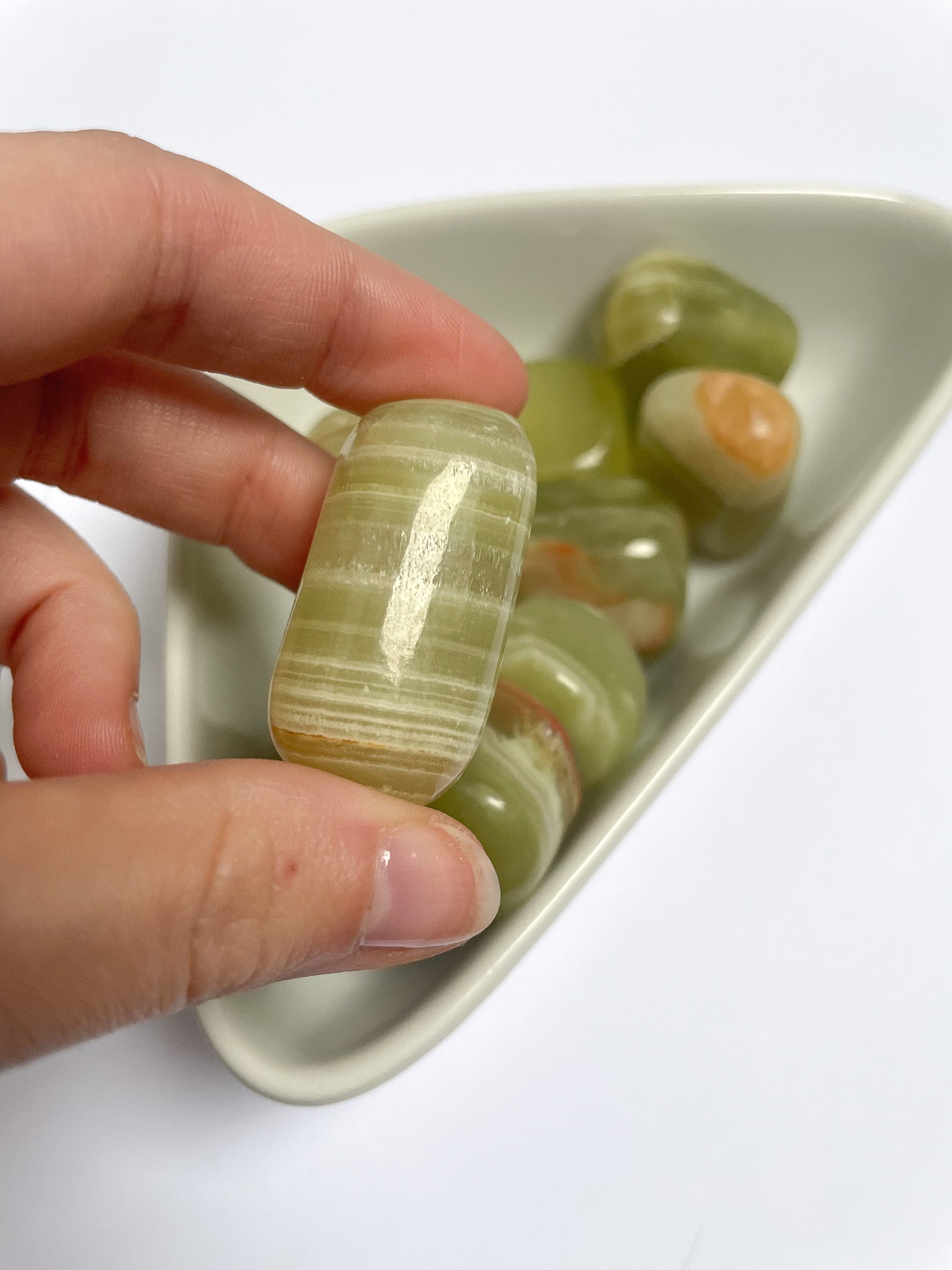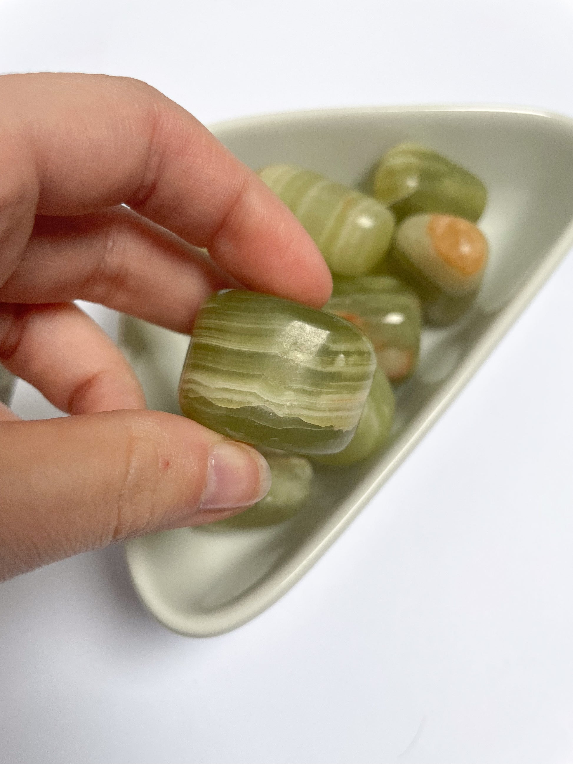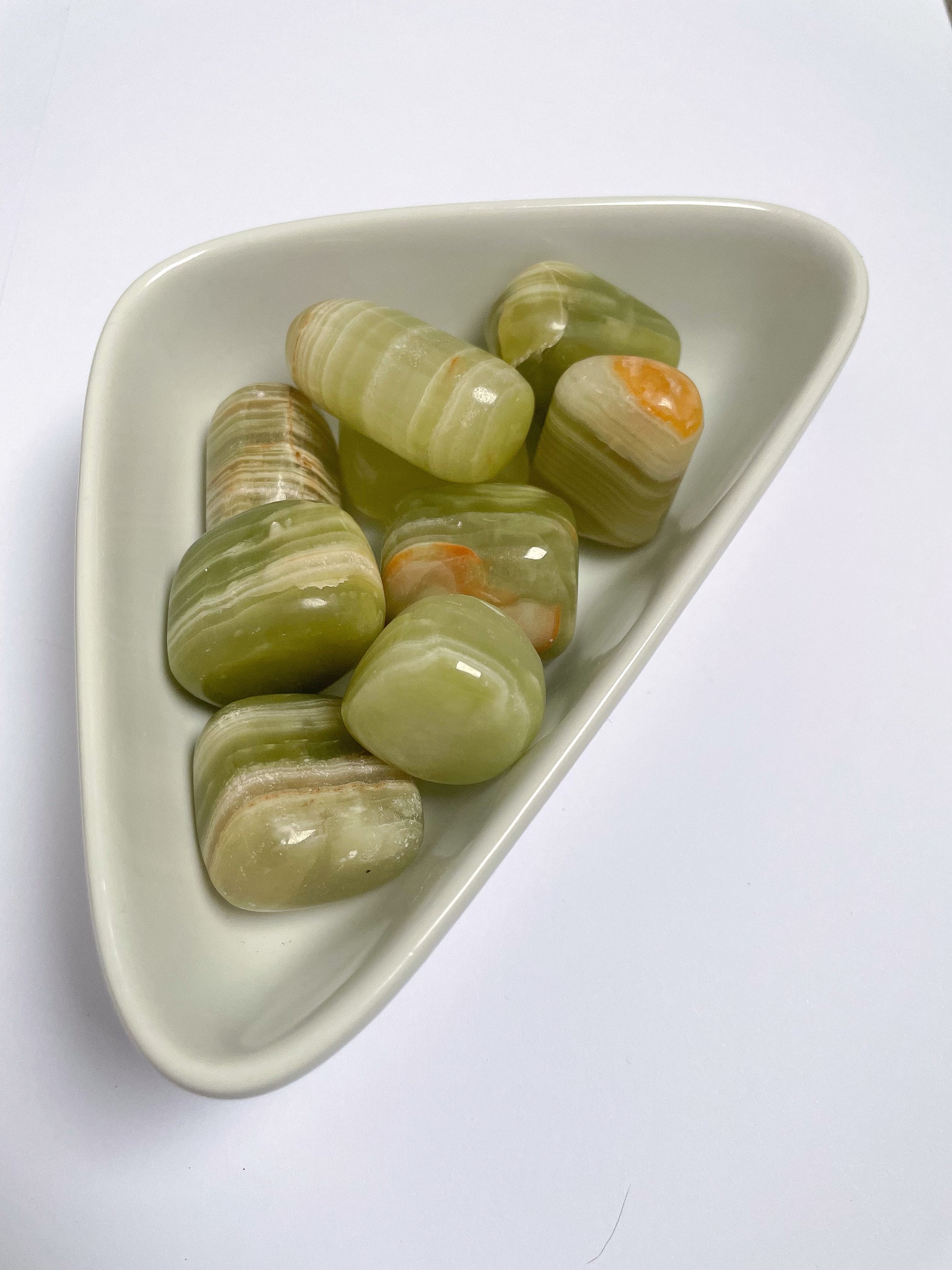 Beautiful green onyx tumblestones from Indonesia, full of soft, calming energy.
