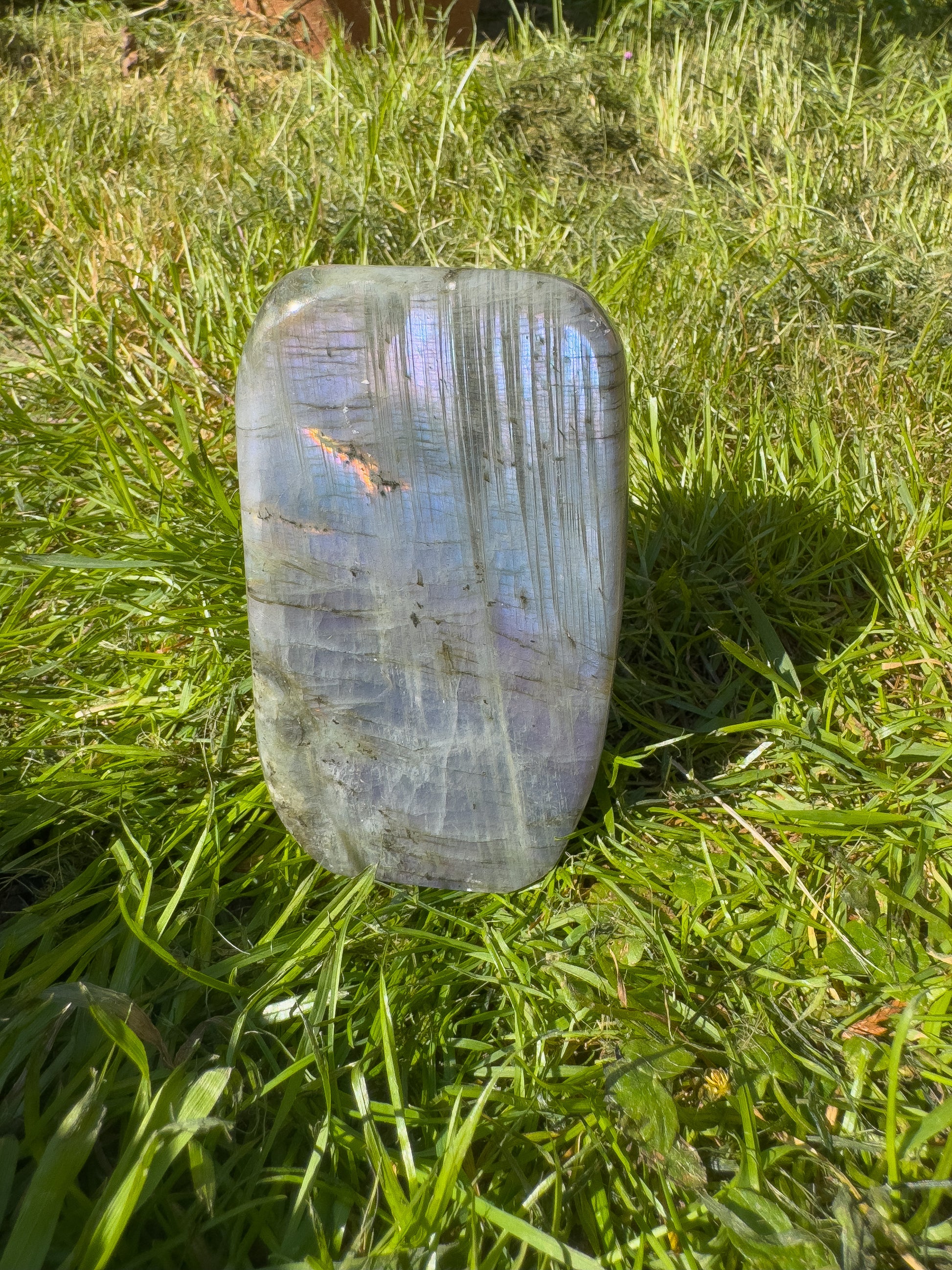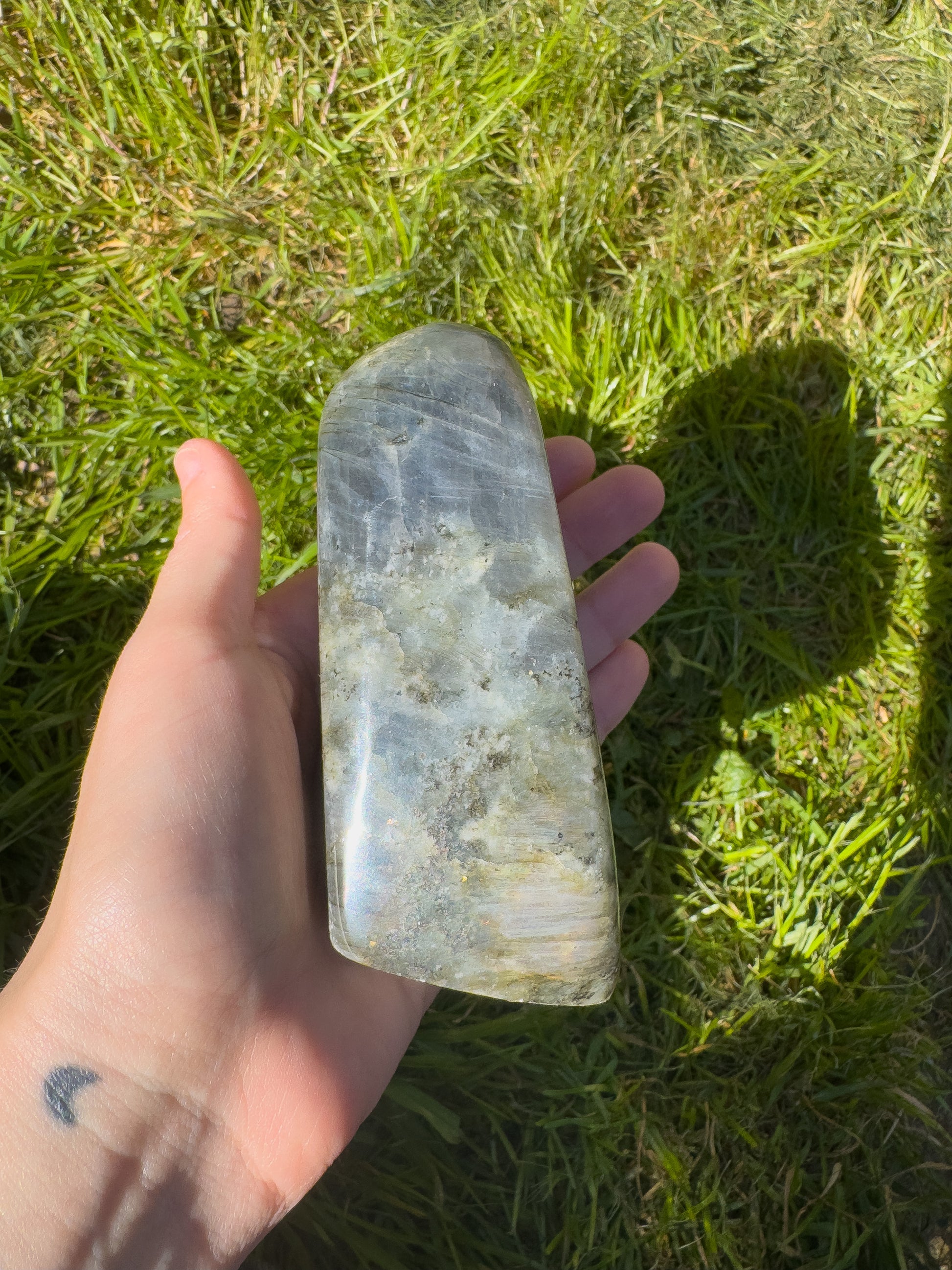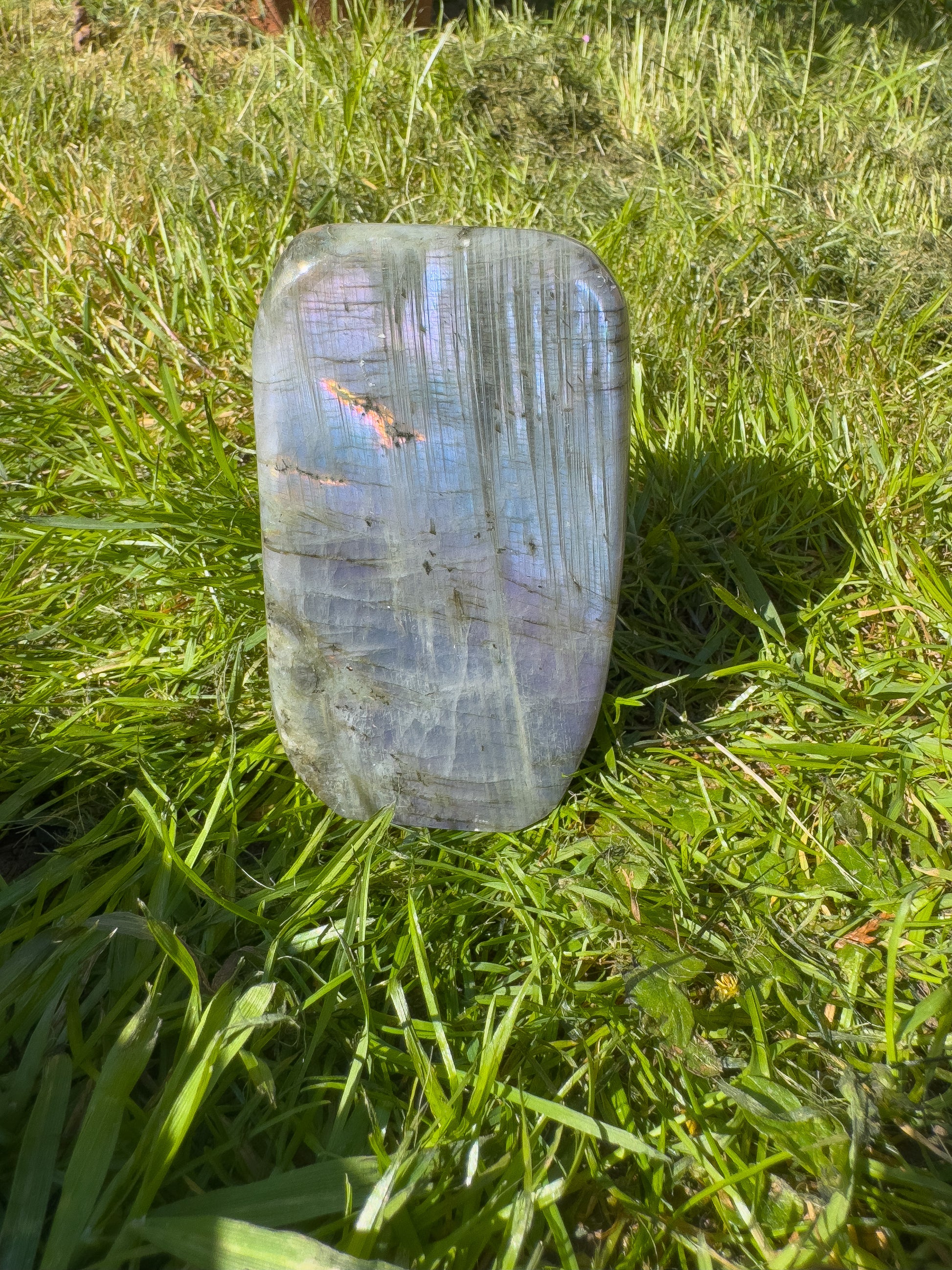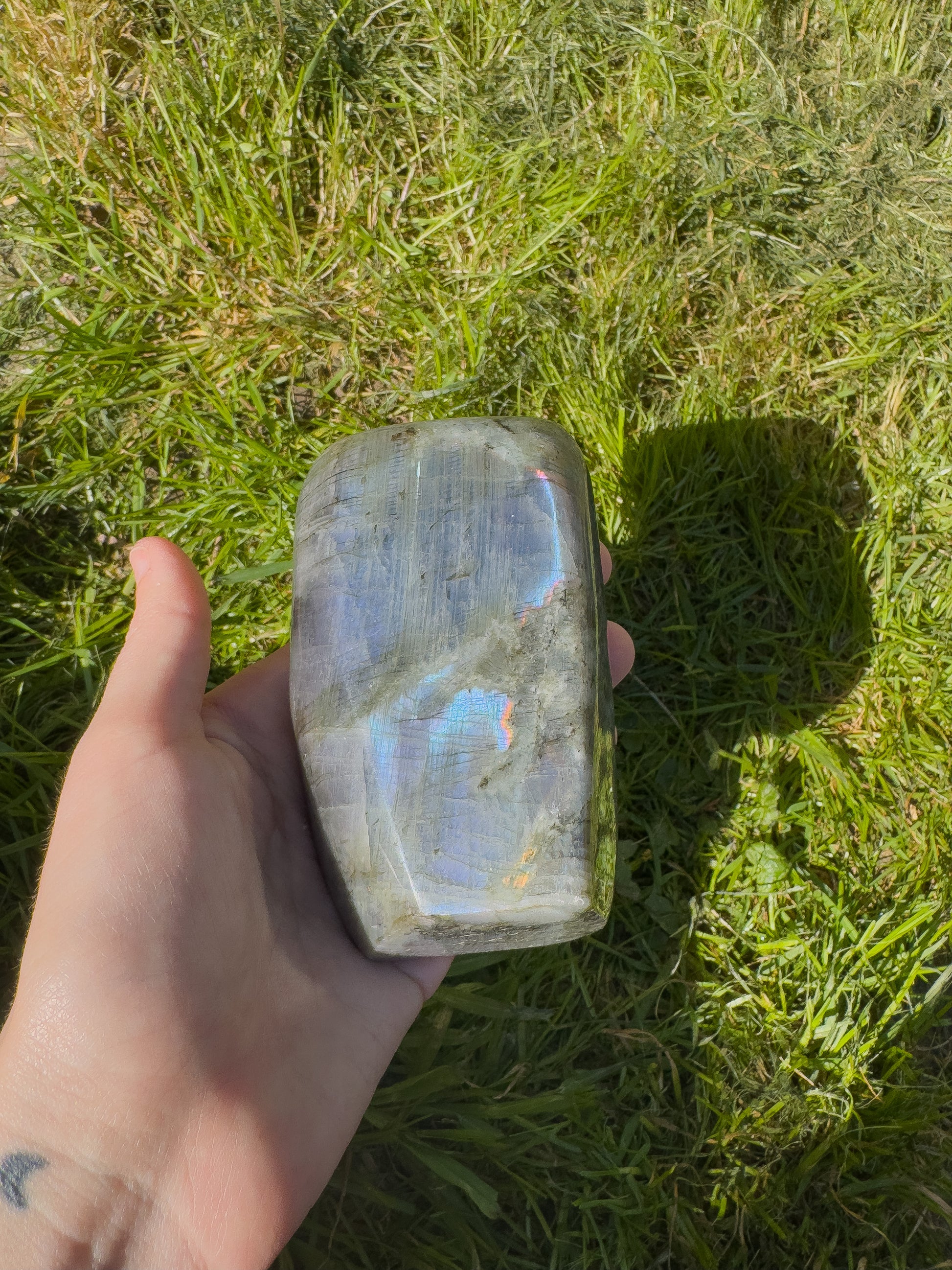 This stunning labradorite freeform features beautiful blue flashes that catch the light from different angles, making it a true eye-catcher for any collection.