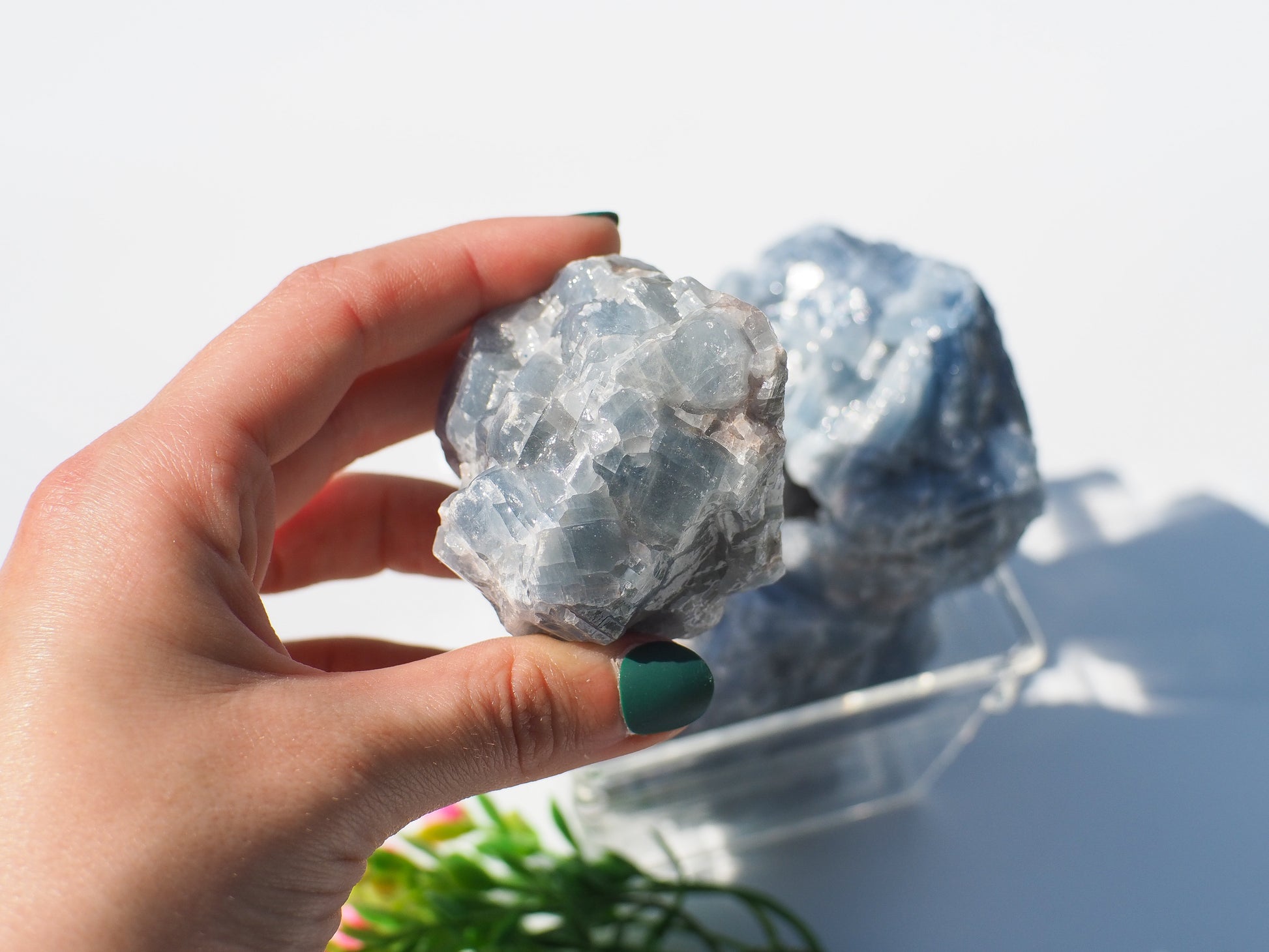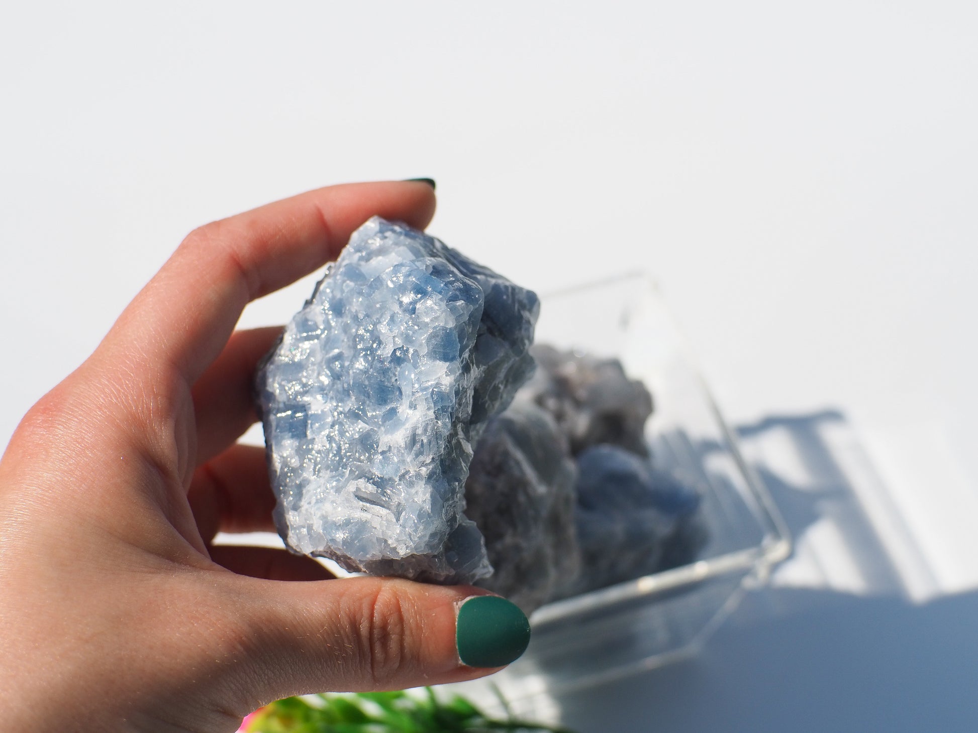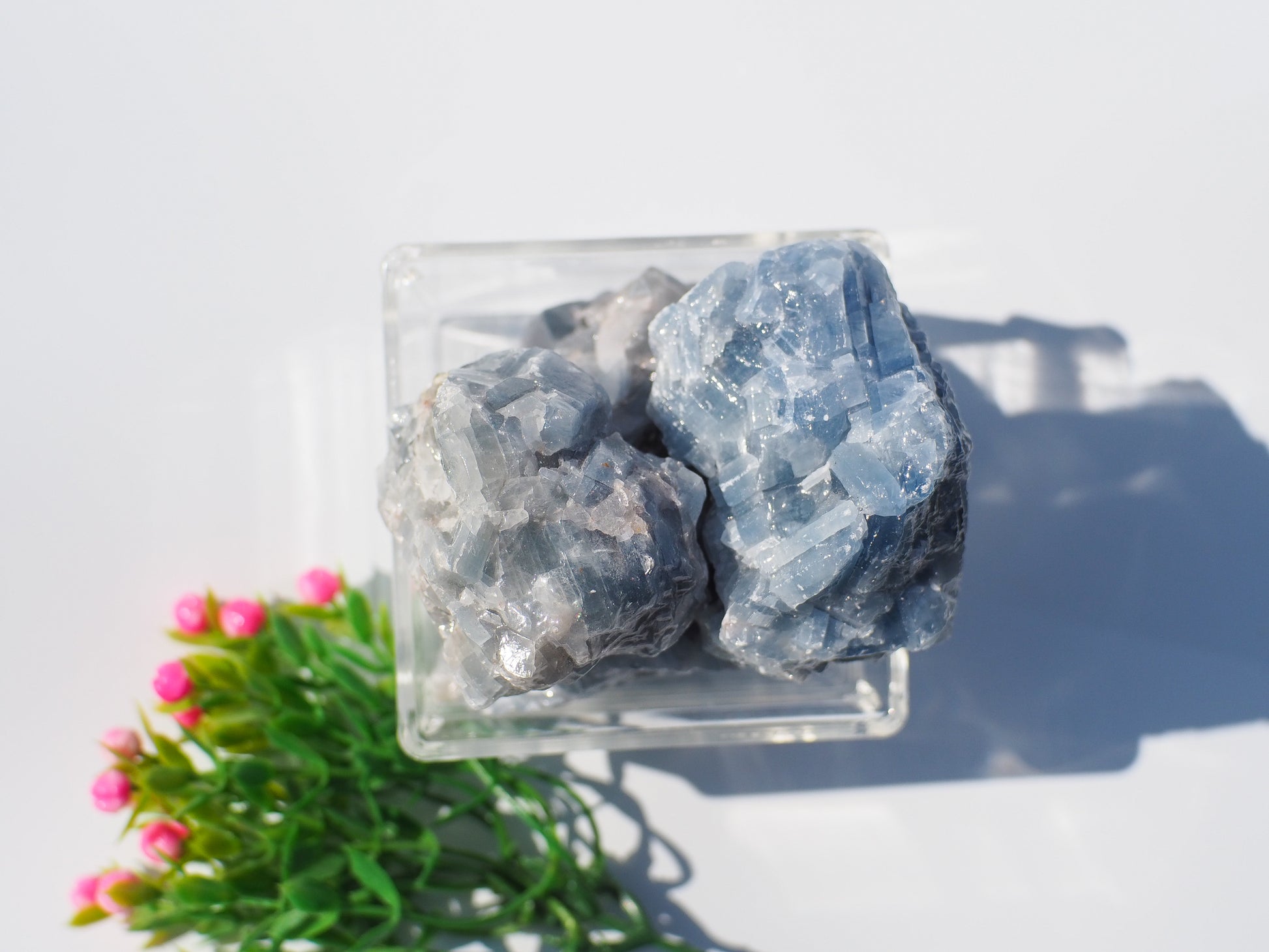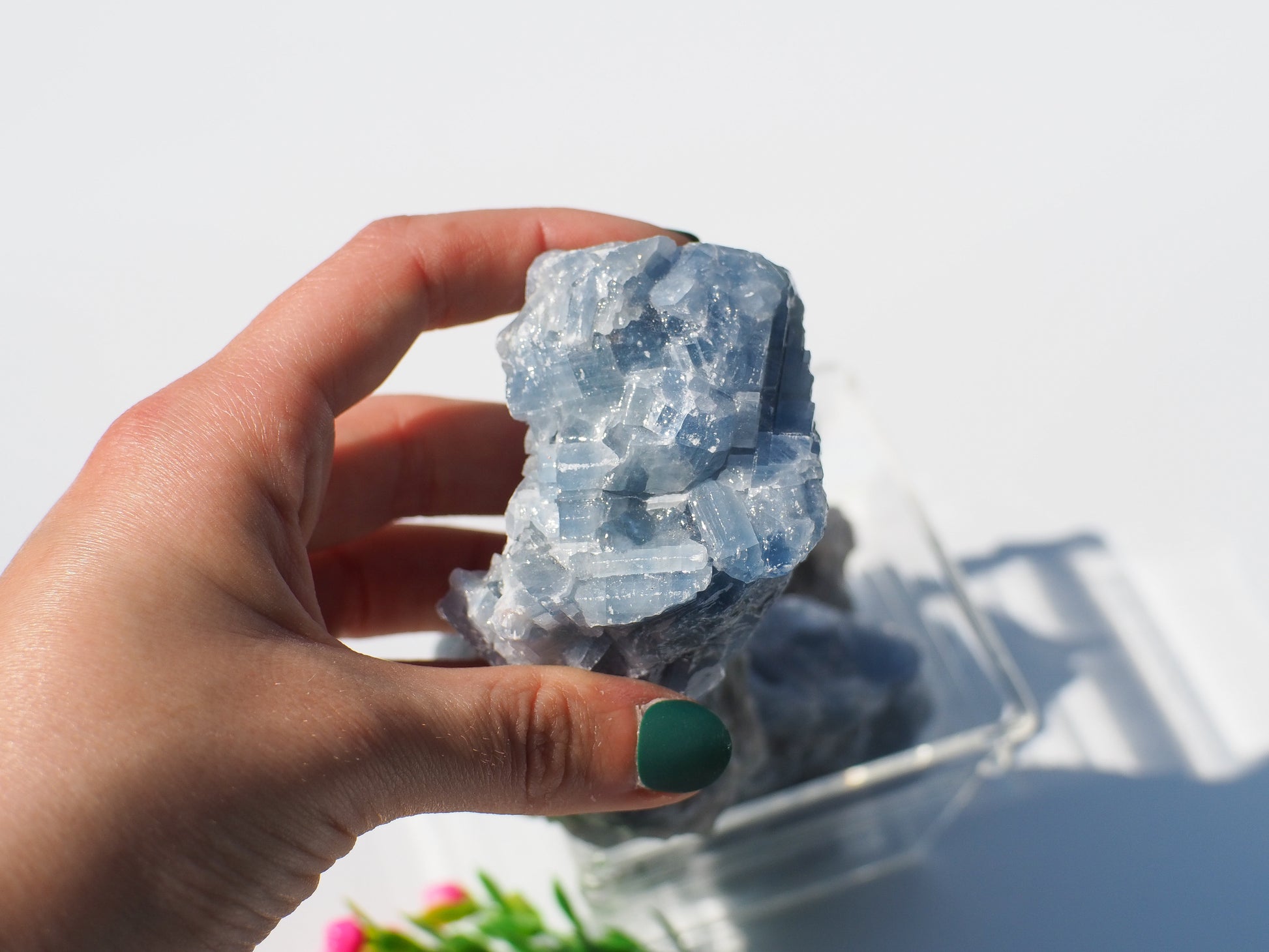 These beautiful raw blue calcite chunks are from Brazil and you will receive one intuitively chosen piece. Blue calcite is a soothing stone, known for promoting emotional intelligence, effective communication, and emotional release.