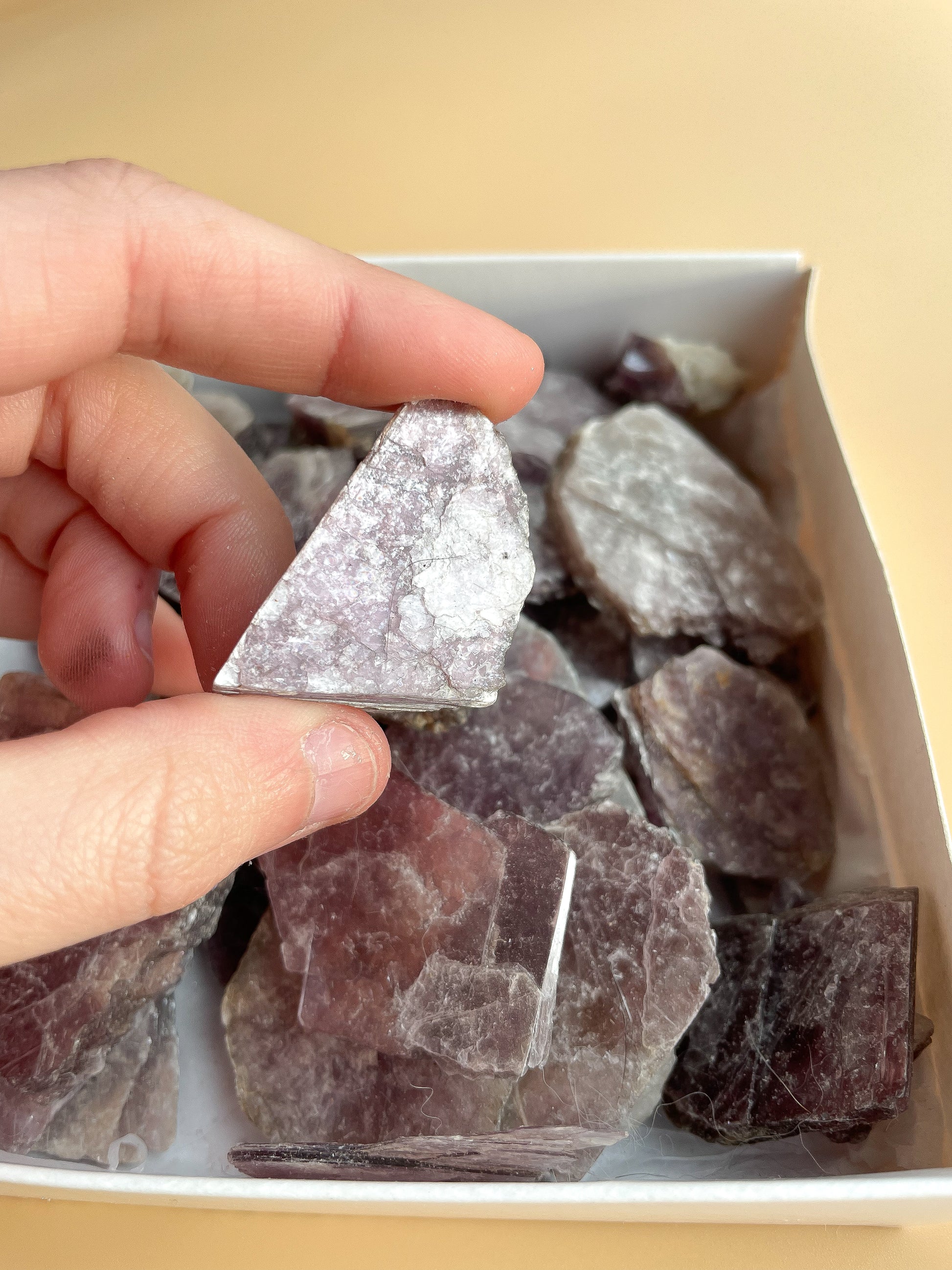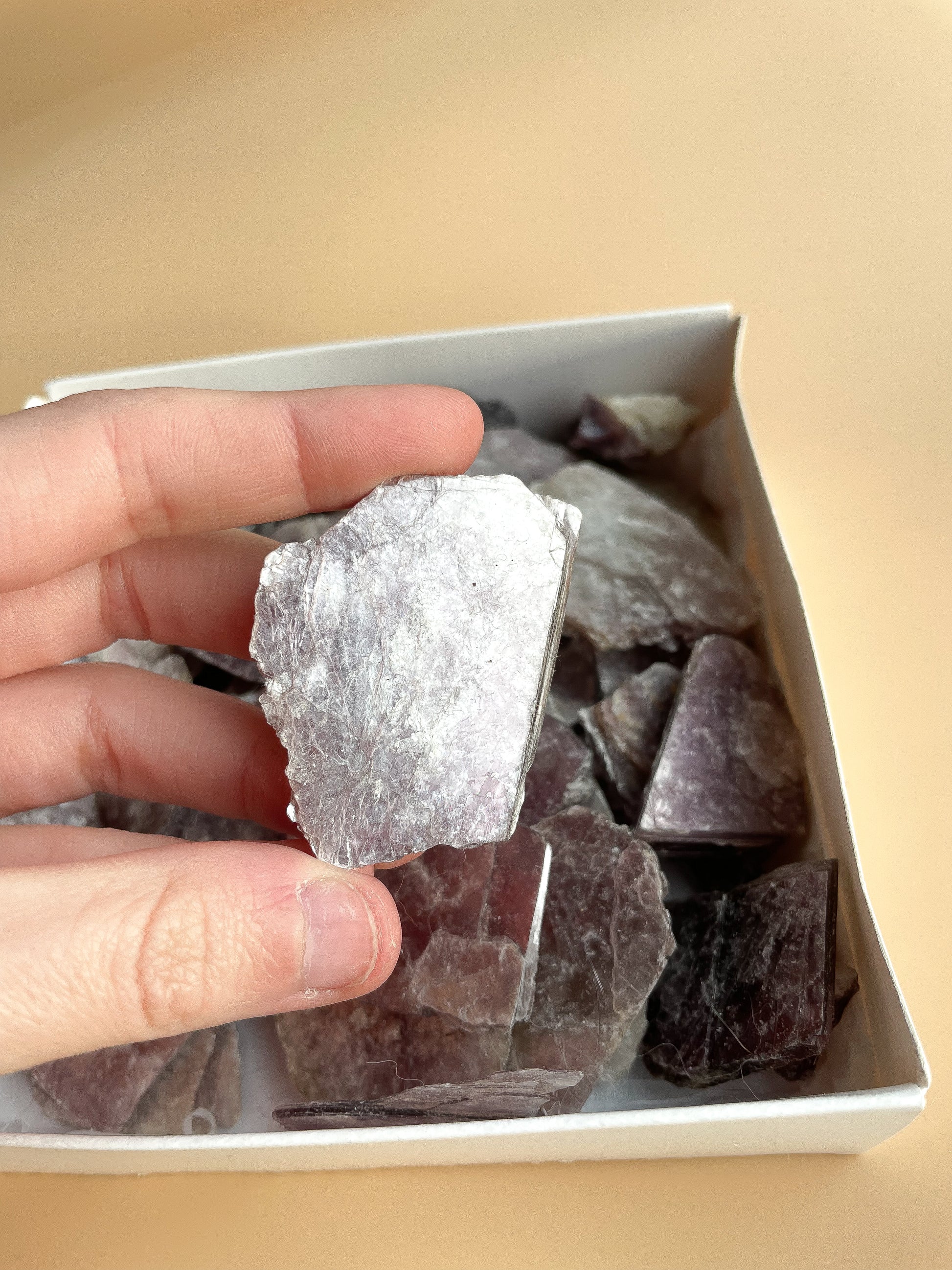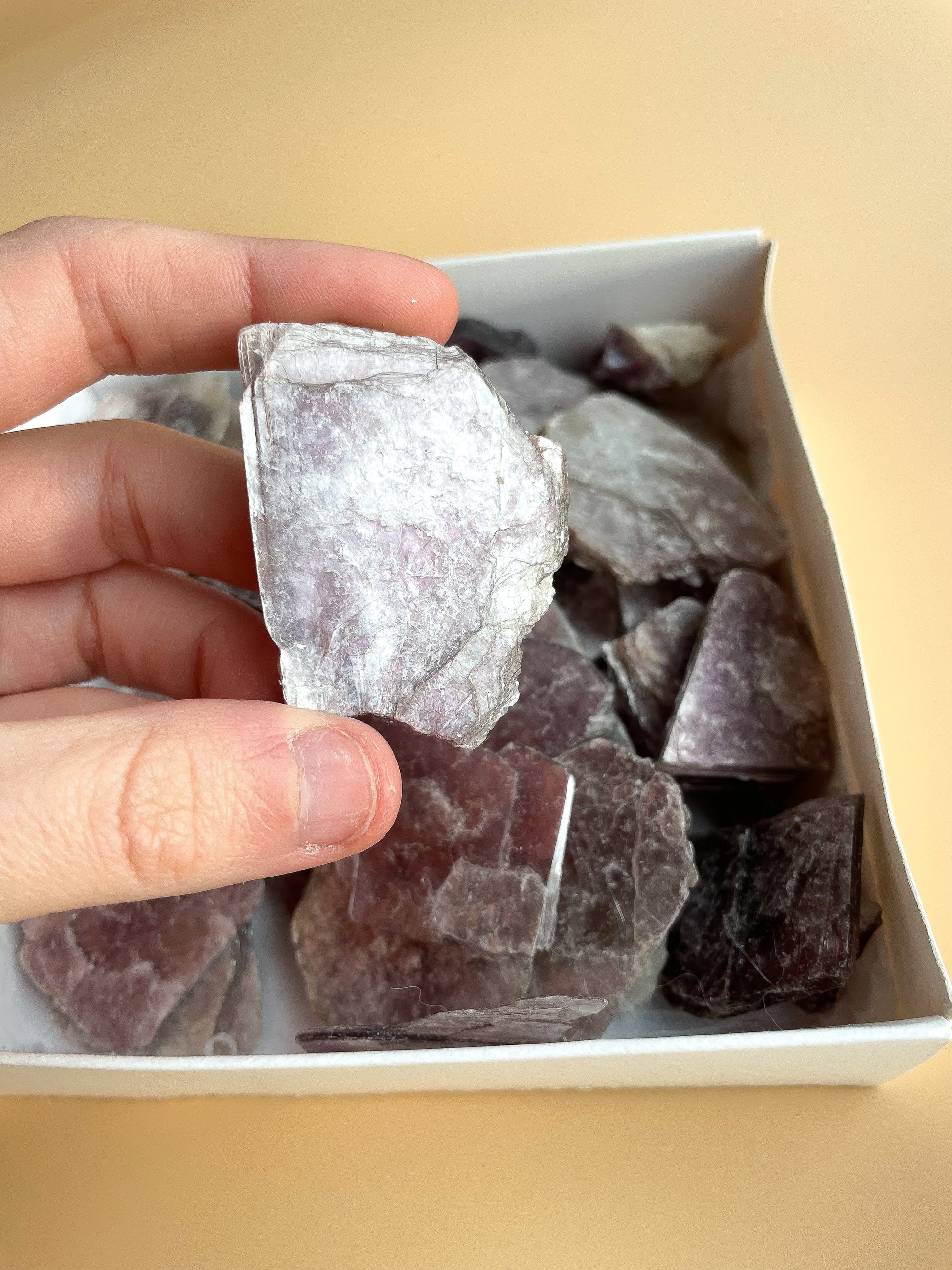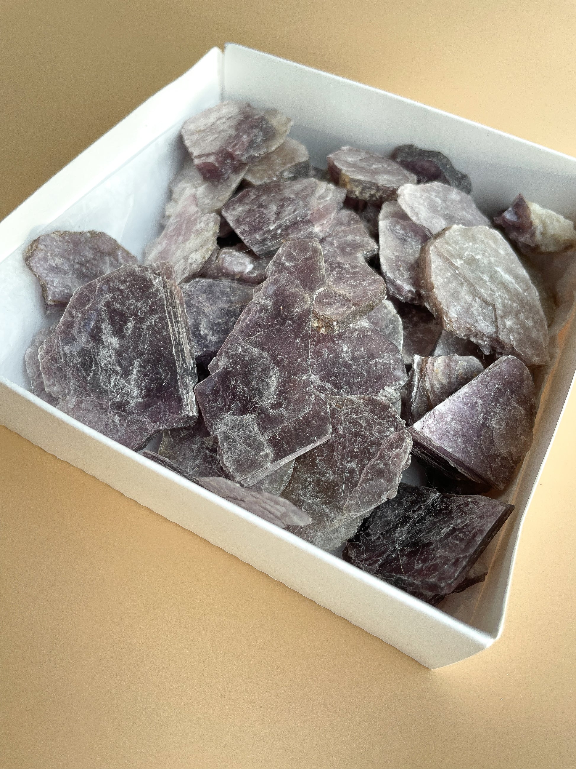 These stunning gemmy lepidolite slices come in three sizes: mini, small, and medium. Lepidolite is a very soft stone, known for its ability to help with transitions and harmonising emotions. It’s a natural source of lithium, making it perfect for healing and emotional stabilisation.
