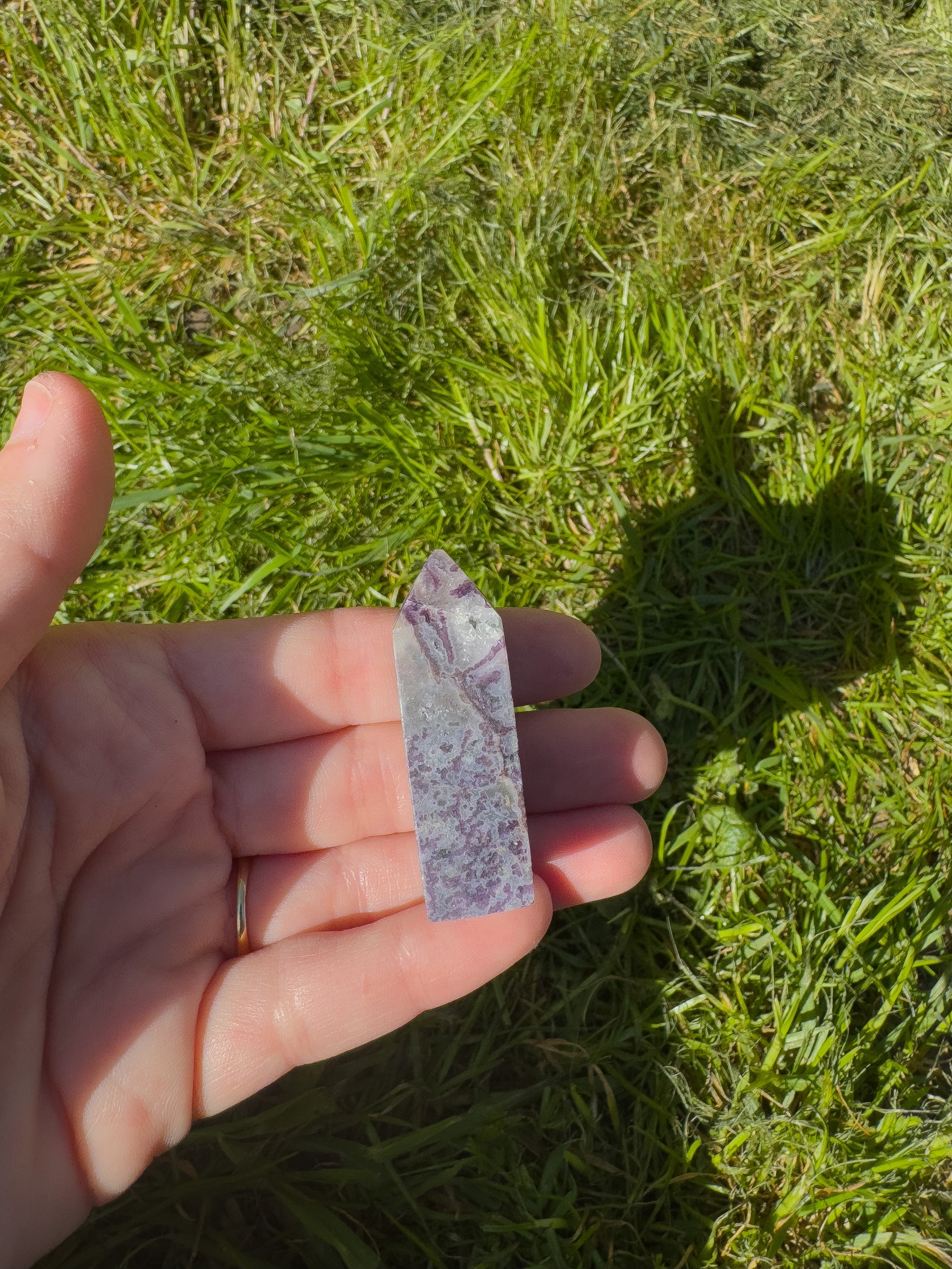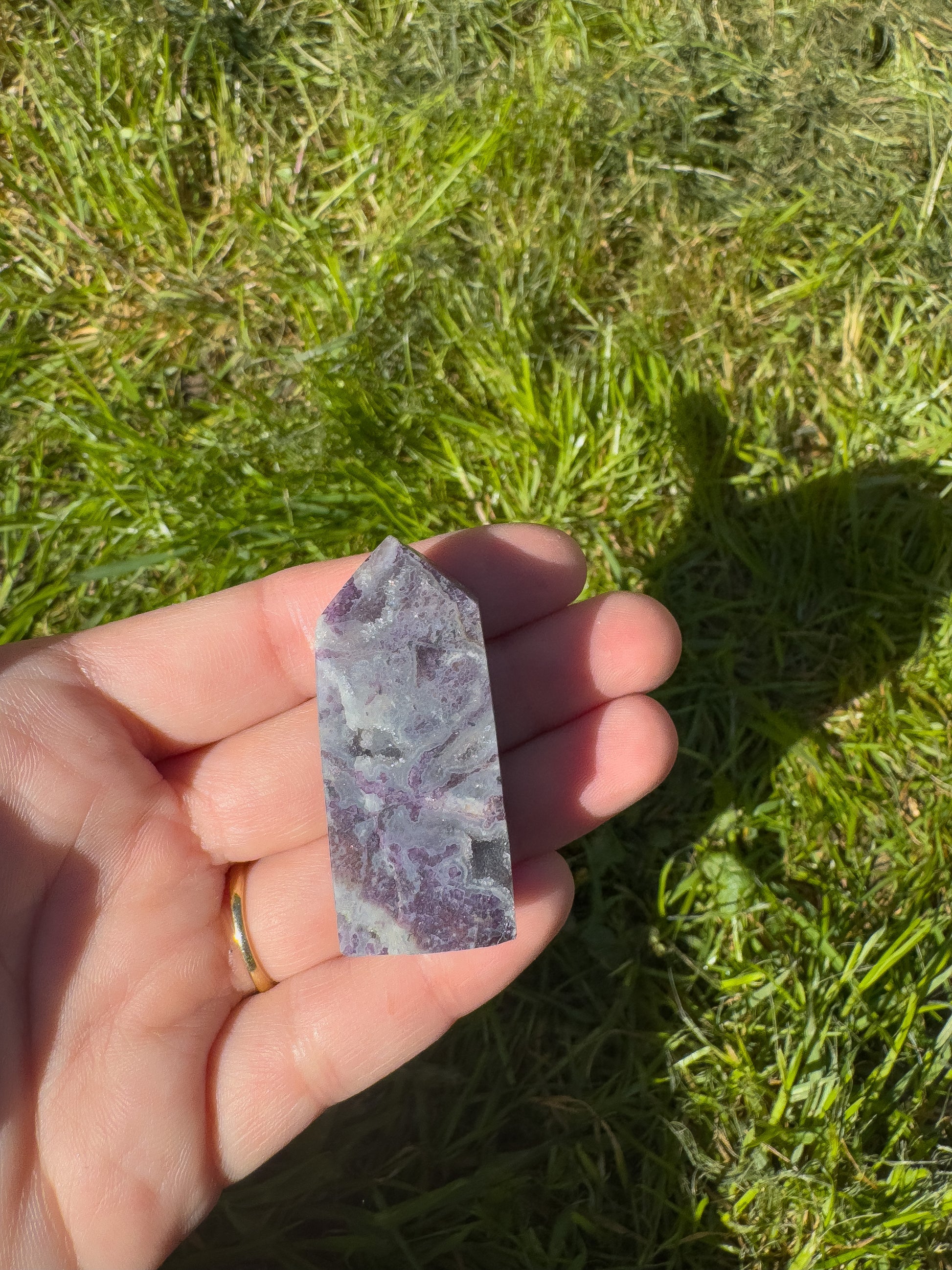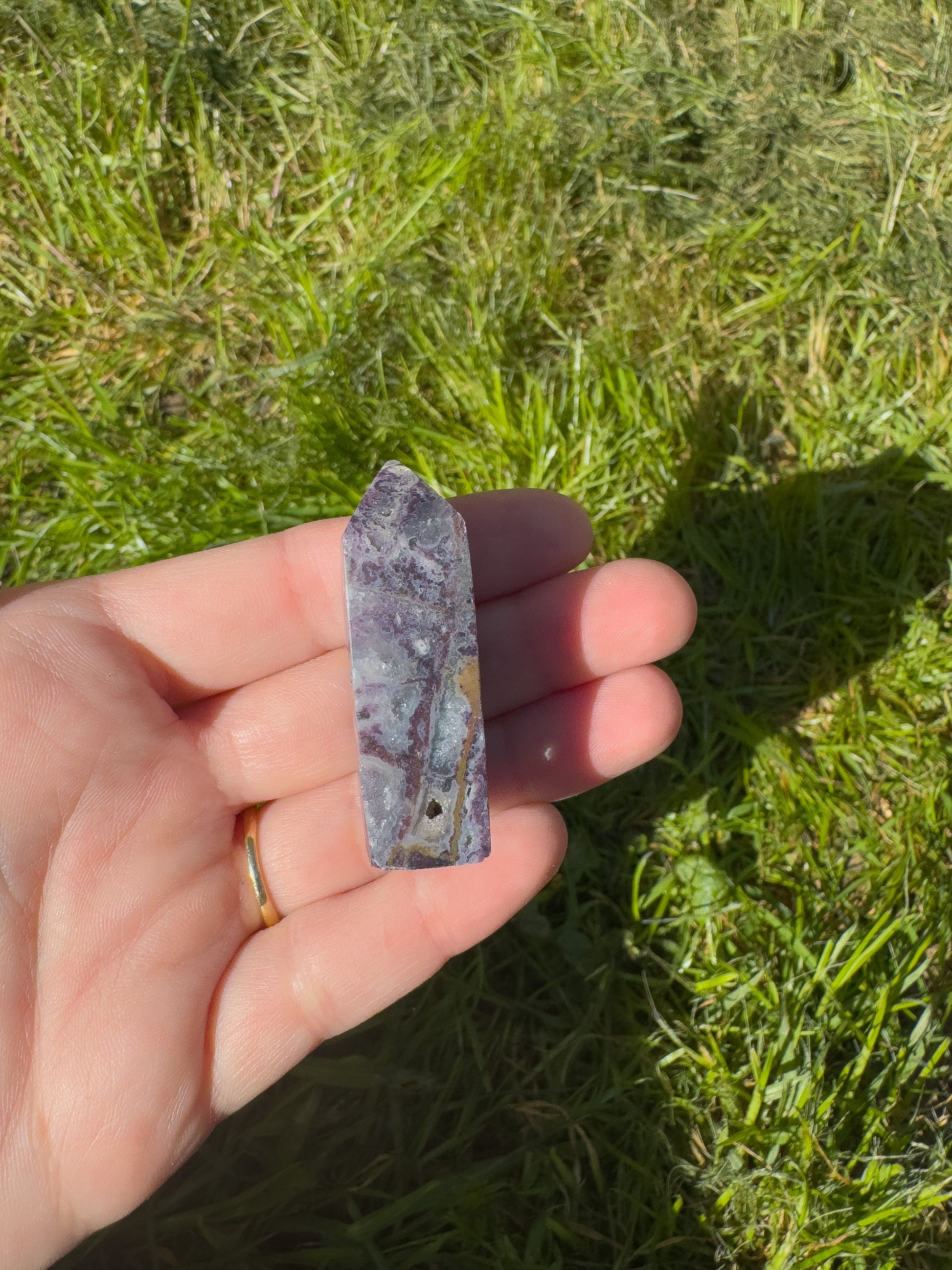 This little tower combines the uplifting, grounding energy of crazy lace agate with the soothing energy of amethyst.