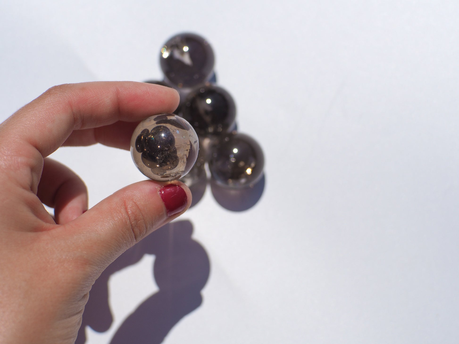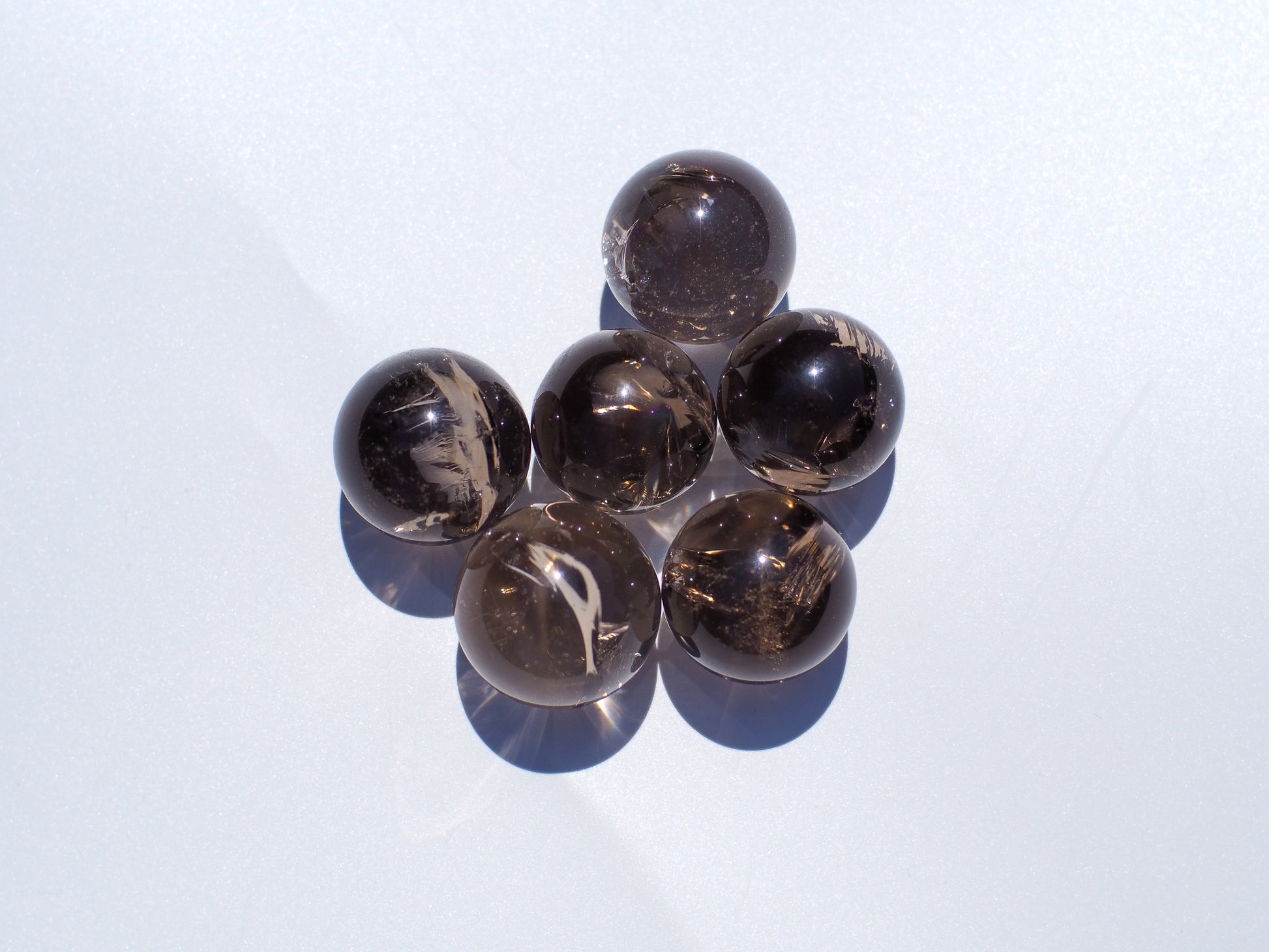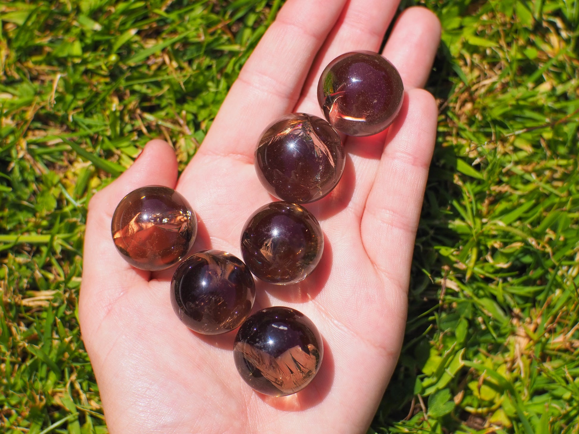 Adorable mini spheres of smoky quartz, each with stunning rainbow flashes!