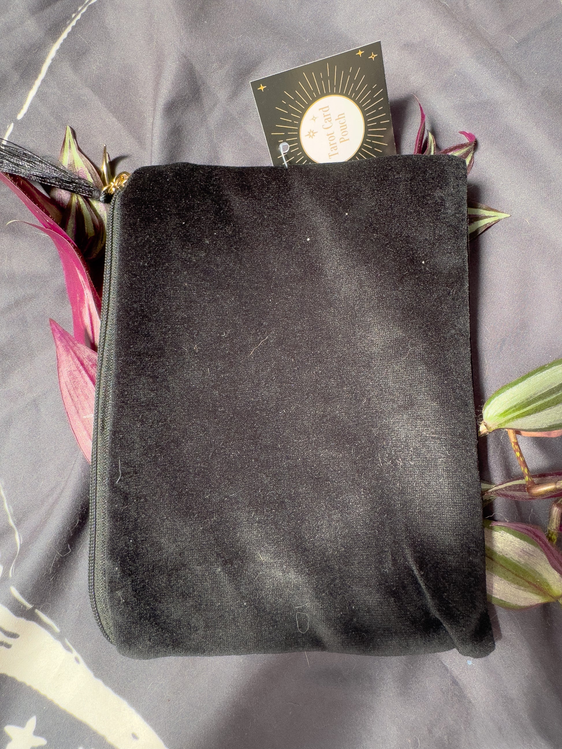 Keep it mystical with this black velvet-style zip-up bag, perfect for makeup or stationery.