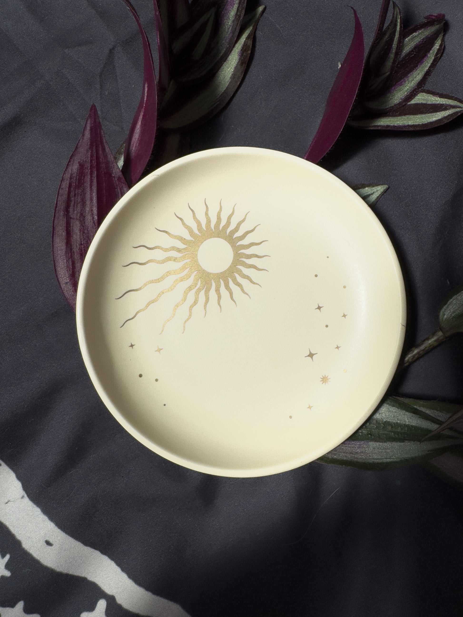 Balance your treasures with this celestial set - featuring a white sun-shaped dish and a black moon yang dish that stacks perfectly.